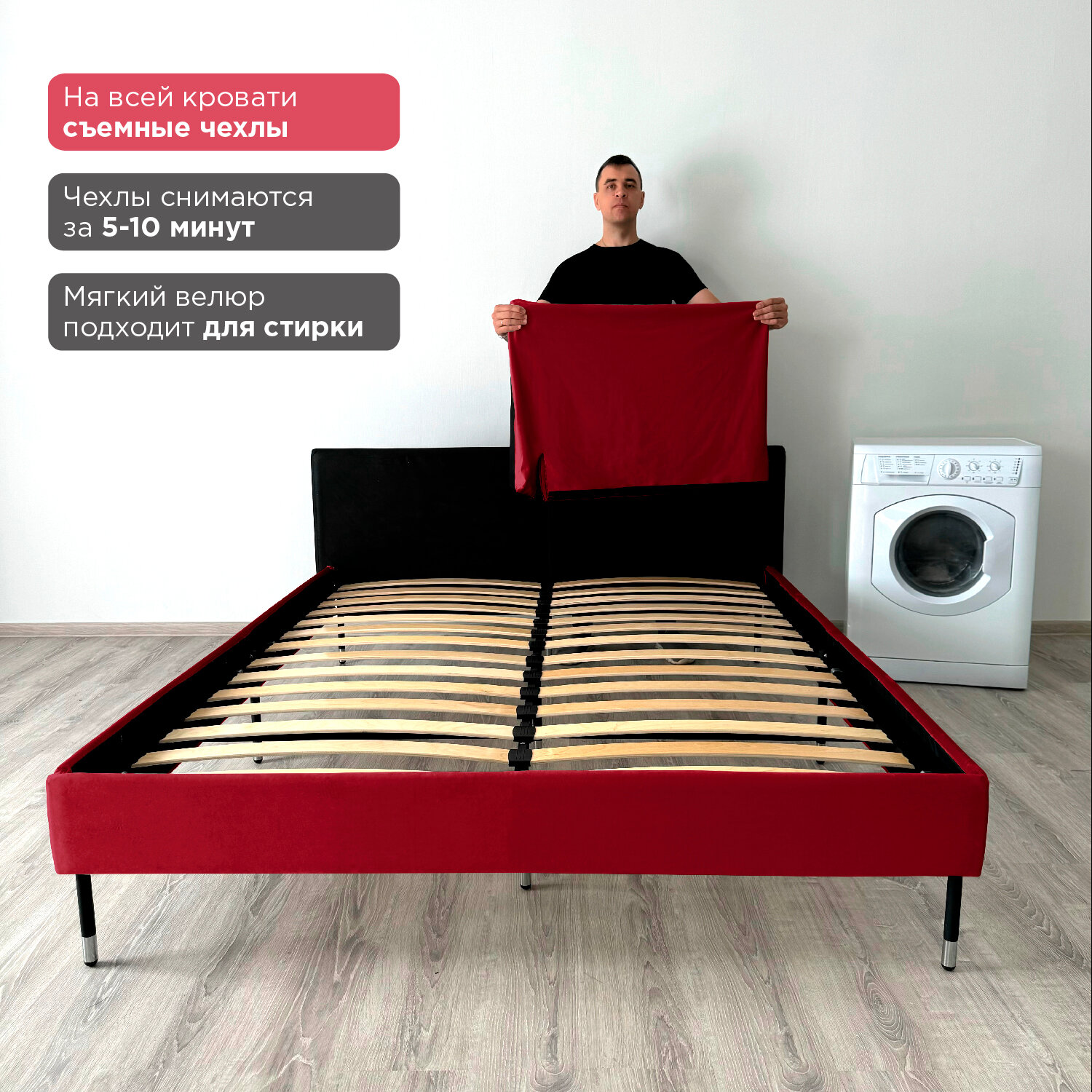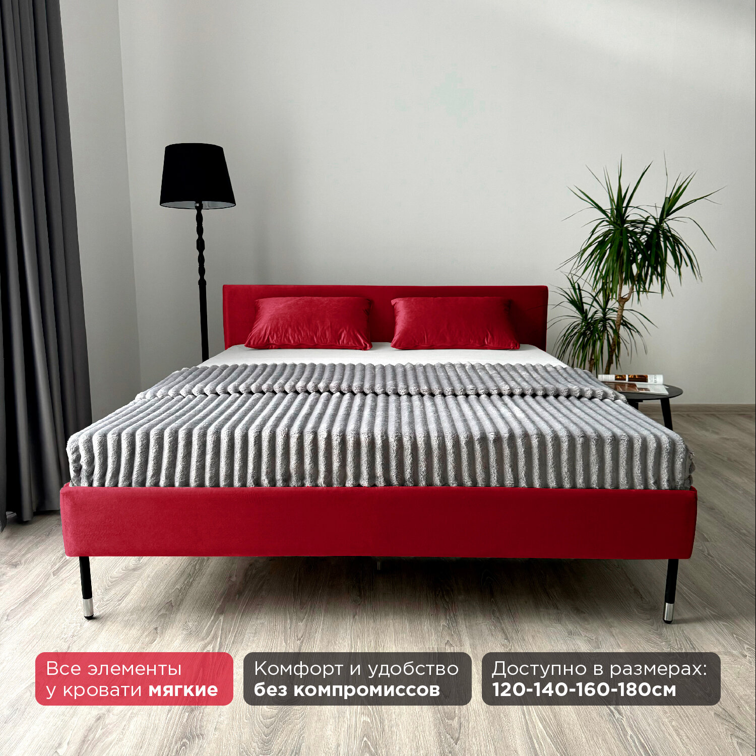 Кровать Redsofa Сити красный Шайн / ножки хром 140х200 с ортопедическим основанием