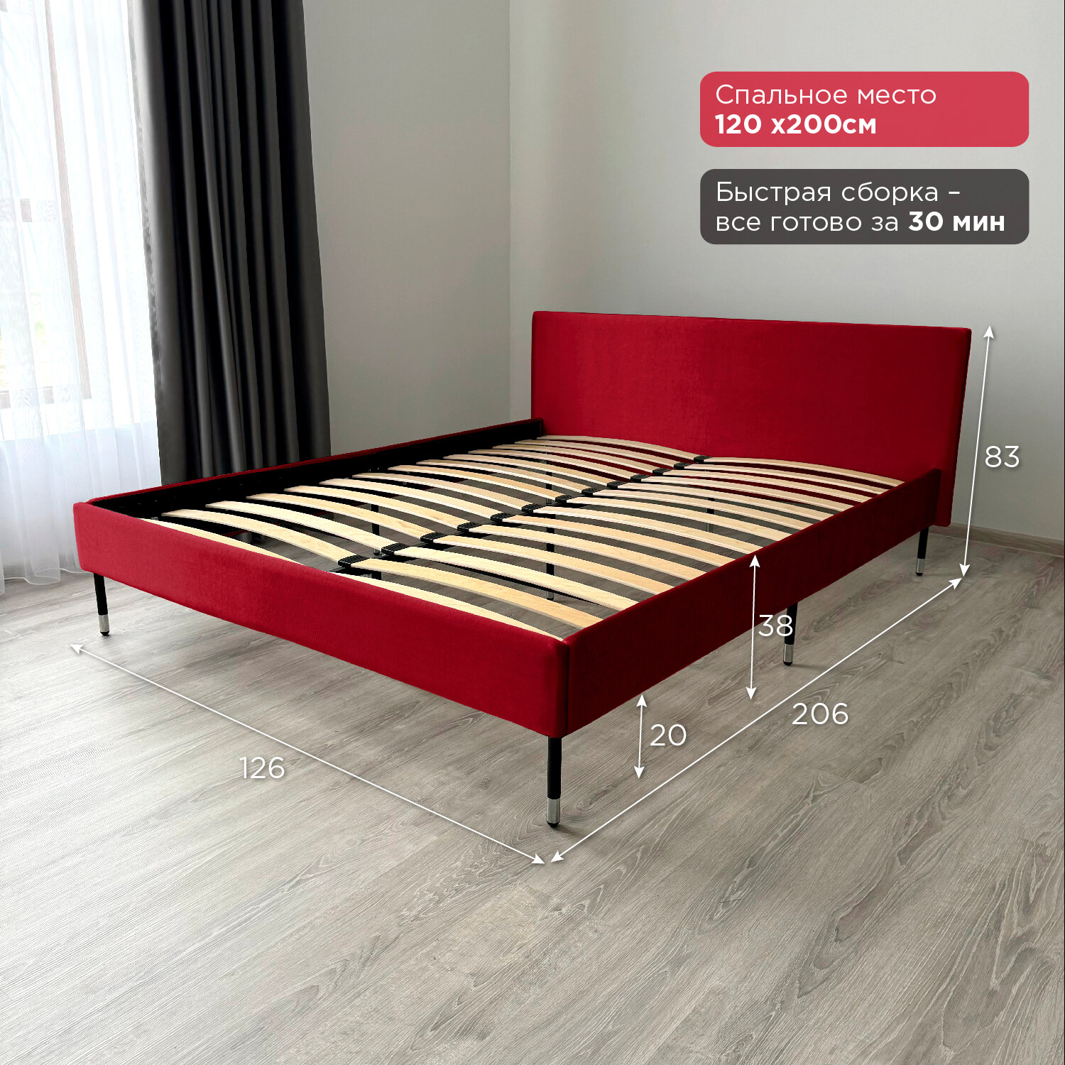 Купить Кровать Redsofa Сити красный Шайн / ножки хром 120х200 с ортопедическим основанием