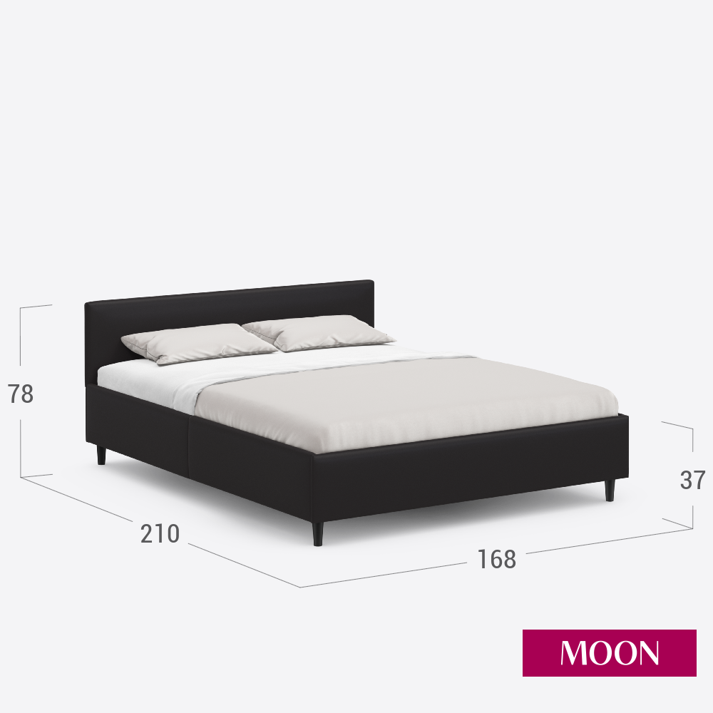 Кровать двуспальная без подъемного механизма, MOON FAMILY 1250, размер 160х200 см, экокожа темно-коричневая. Ортопедическое основание в комплекте