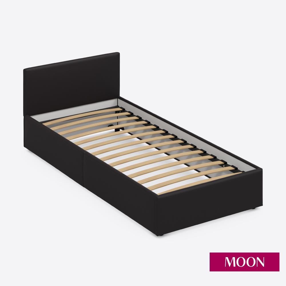 Кровать односпальная без подъемного механизма, MOON FAMILY 1250, размер 120х200 см, экокожа темно-коричневая. Ортопедическое основание в комплекте