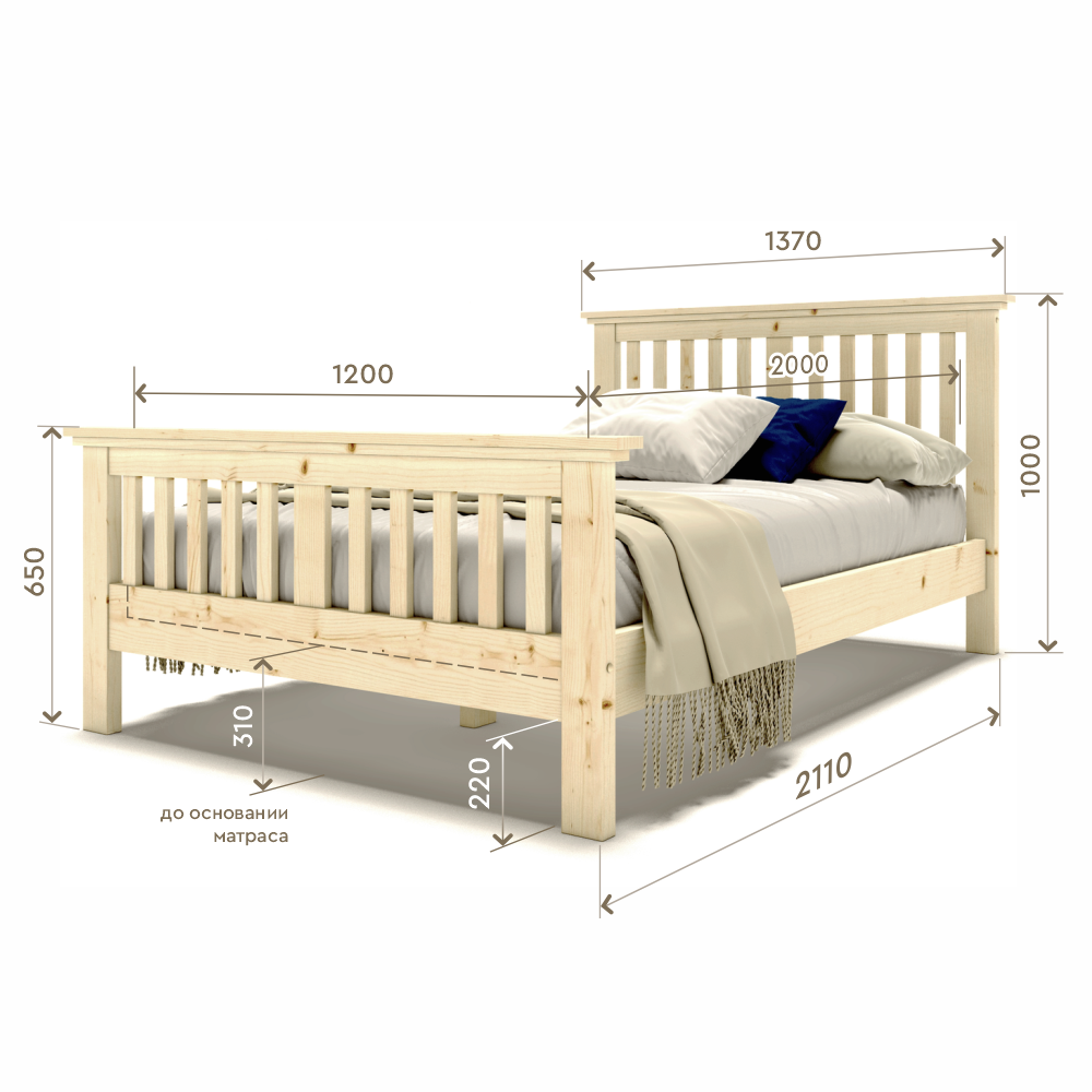 Кровать двуспальная 200х200 см деревянная с изножьем в стиле Прованс