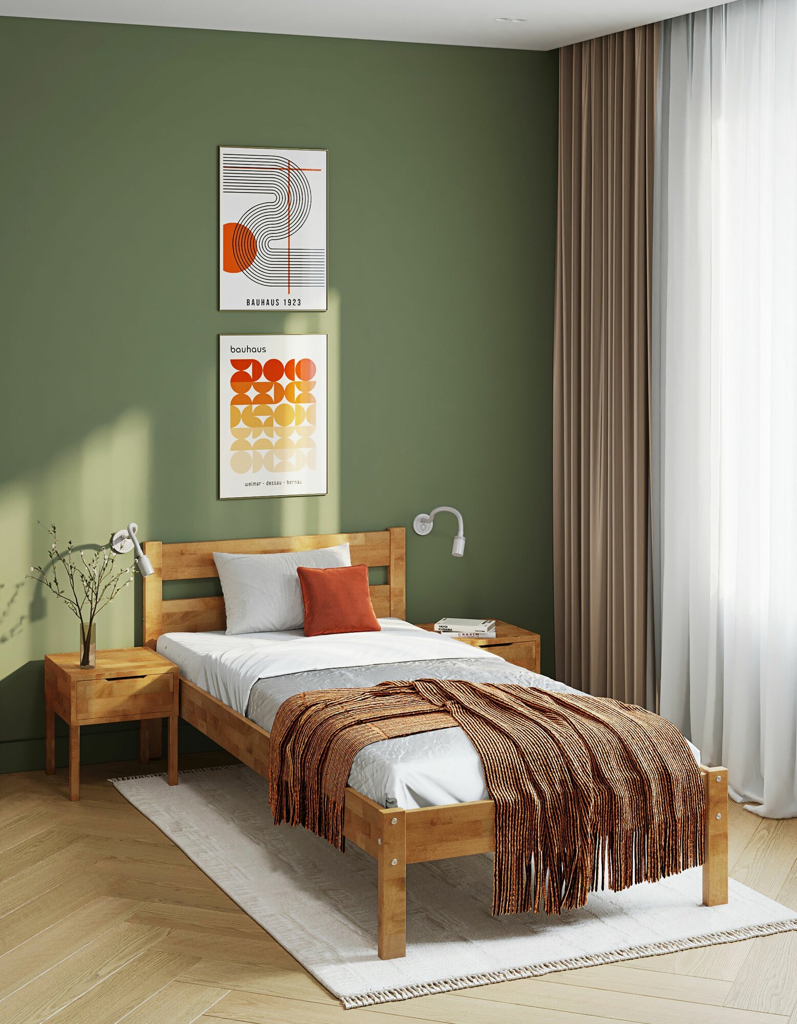 Кровать односпальная, 200х80см, Массив березы, Дуб коньяк, тилия