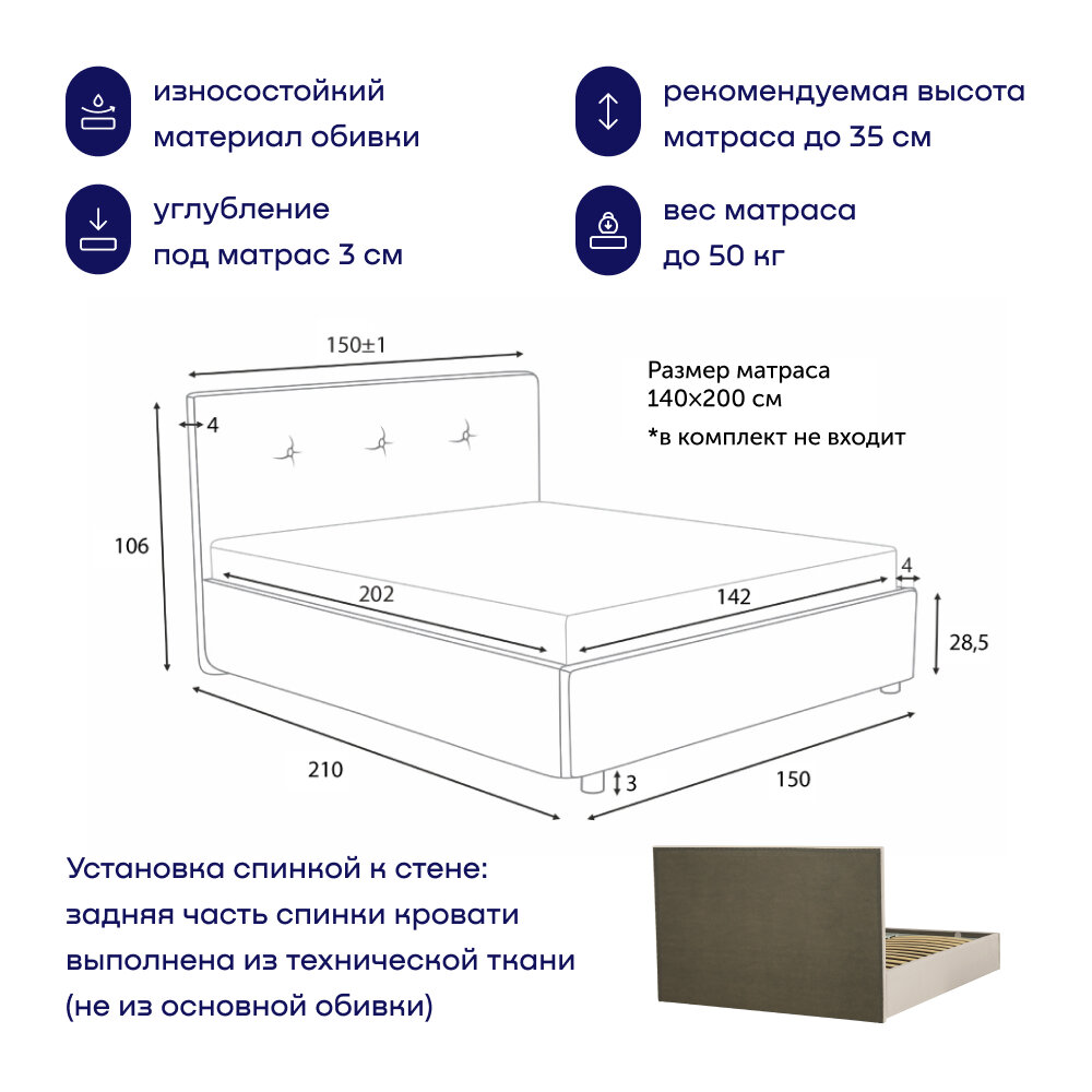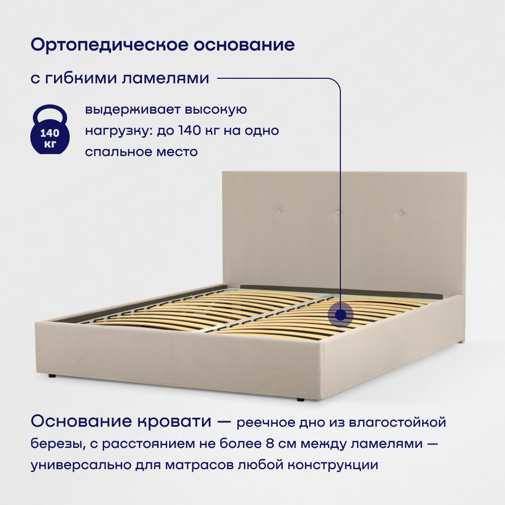 СохранитьДвуспальная кровать buyson BuyRelax 200х140, бежевая, микровелюр интересное: