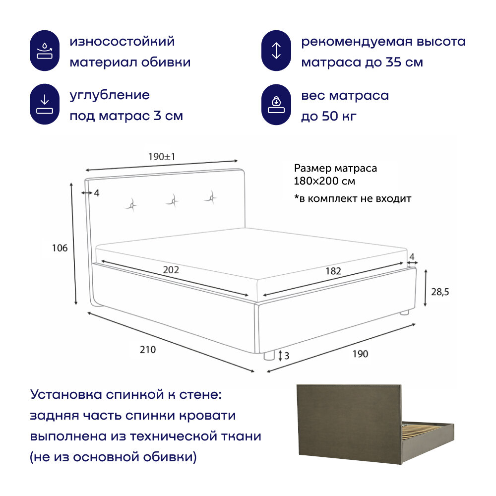 СохранитьДвуспальная кровать buyson BuyRelax 200х180, светло-серый, микровелюр интересное: