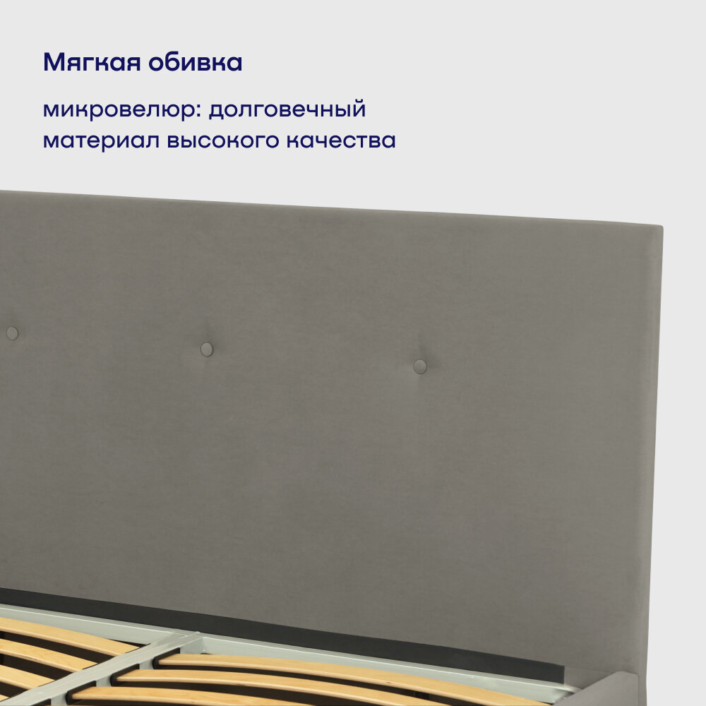 Двуспальная кровать buyson BuyRelax 200х140, темно-серая, микровелюр