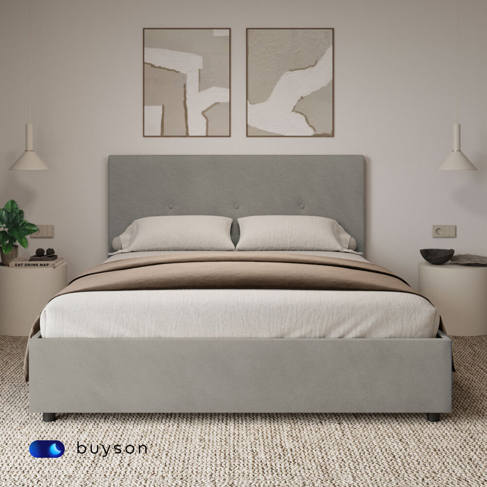 Двуспальная кровать buyson BuyRelax 200х140, светло-серый, микровелюр