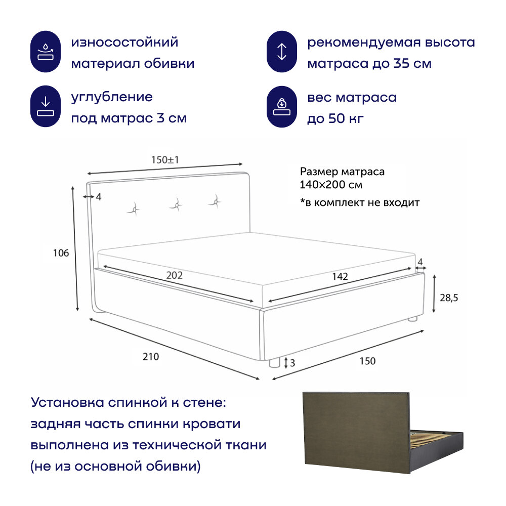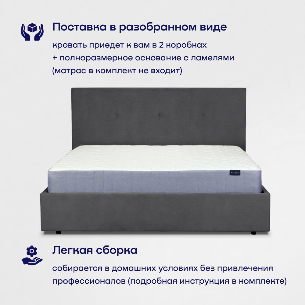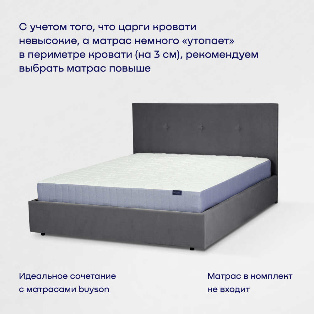 СохранитьДвуспальная кровать buyson BuyRelax 200х140, темно-серая, микровелюр интересное:
