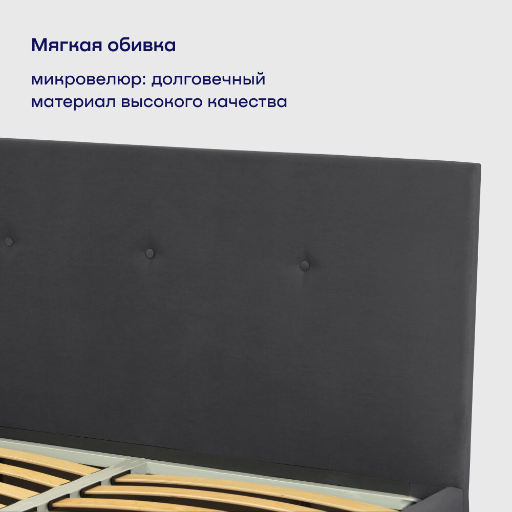 Двуспальная кровать buyson BuyRelax 200х160, темно-серая, микровелюр