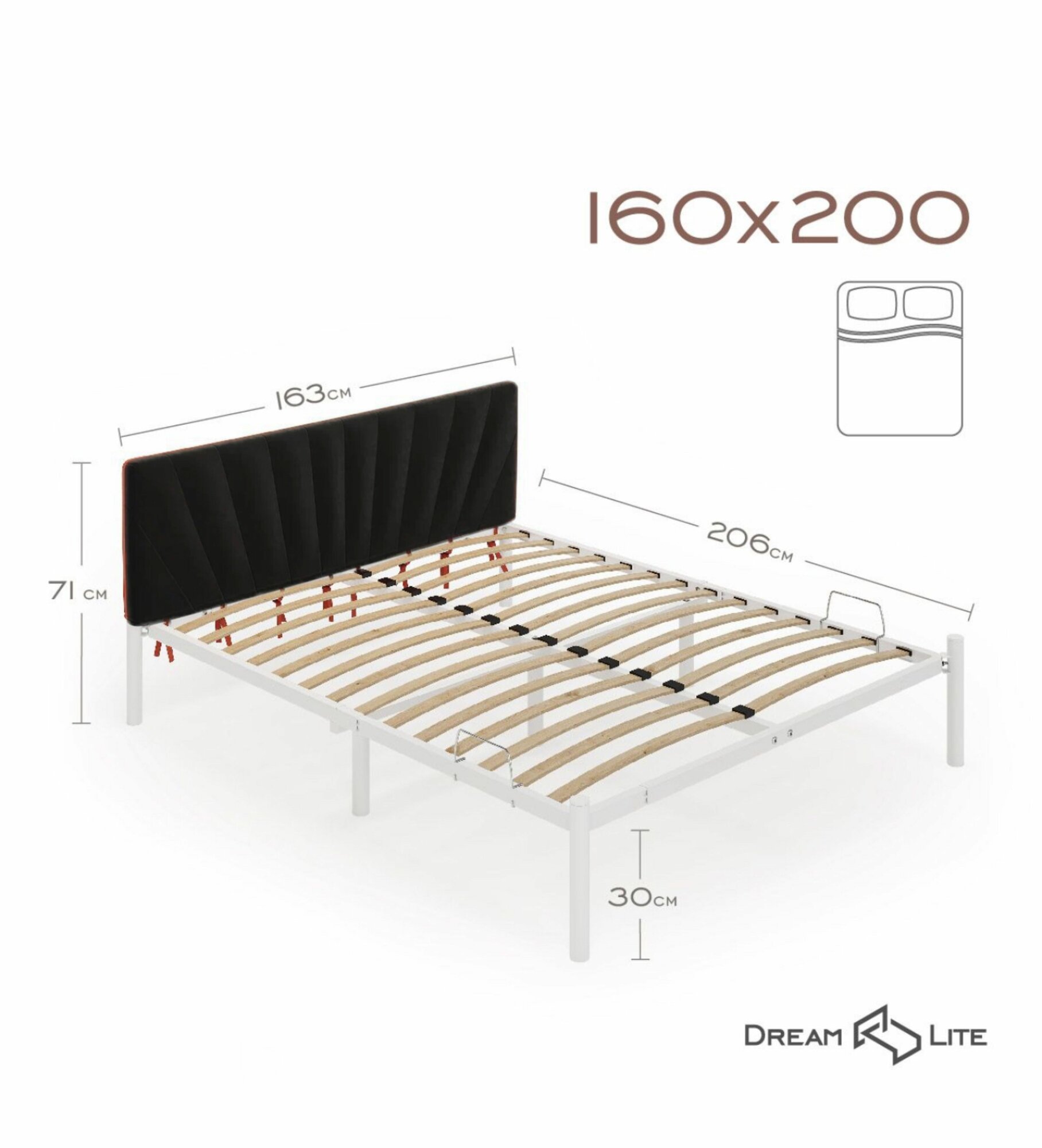 СохранитьКровать "Сена", 160х200 см, велюр Velutto черный, белый каркас, DreamLite интересное: