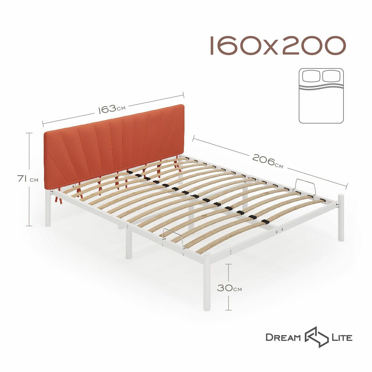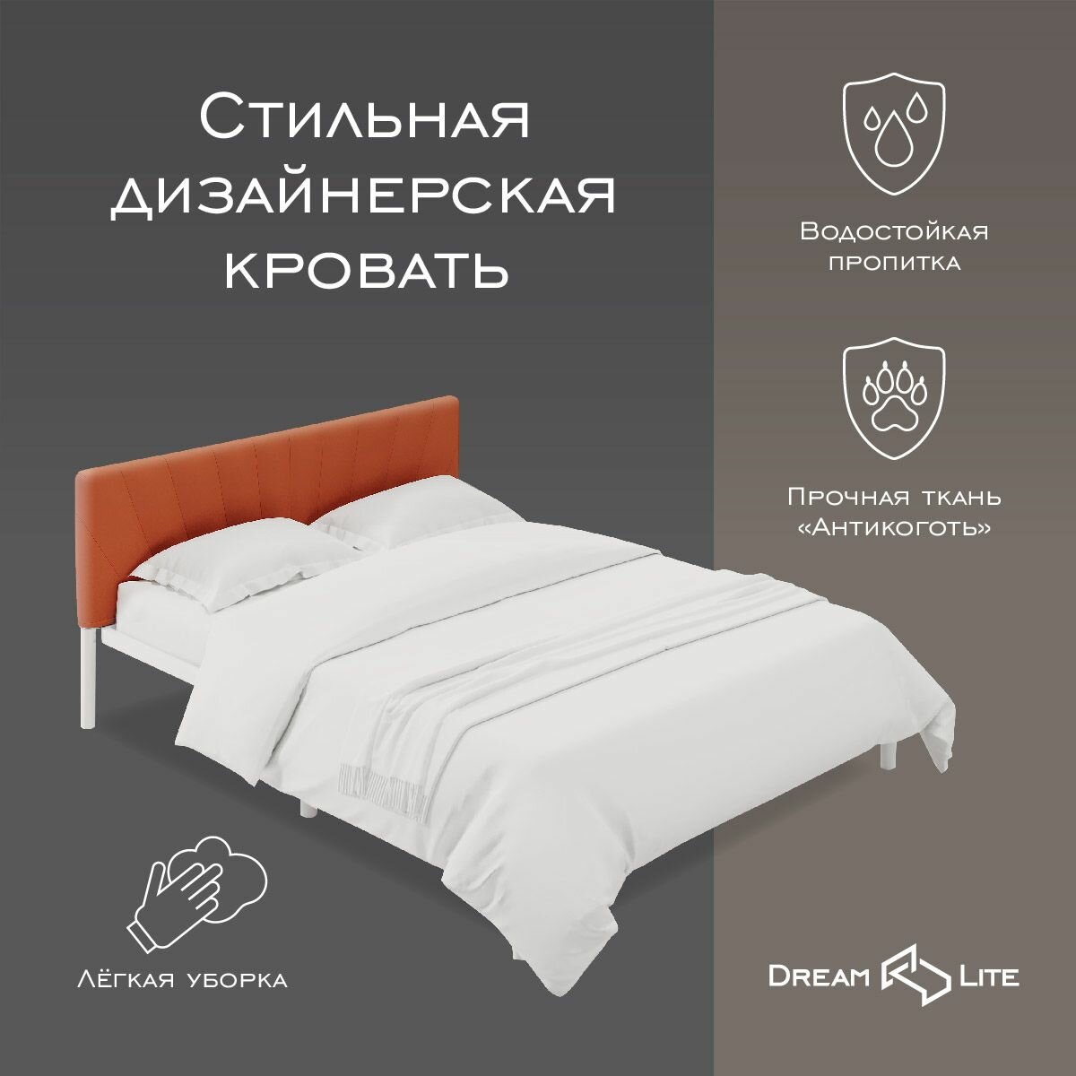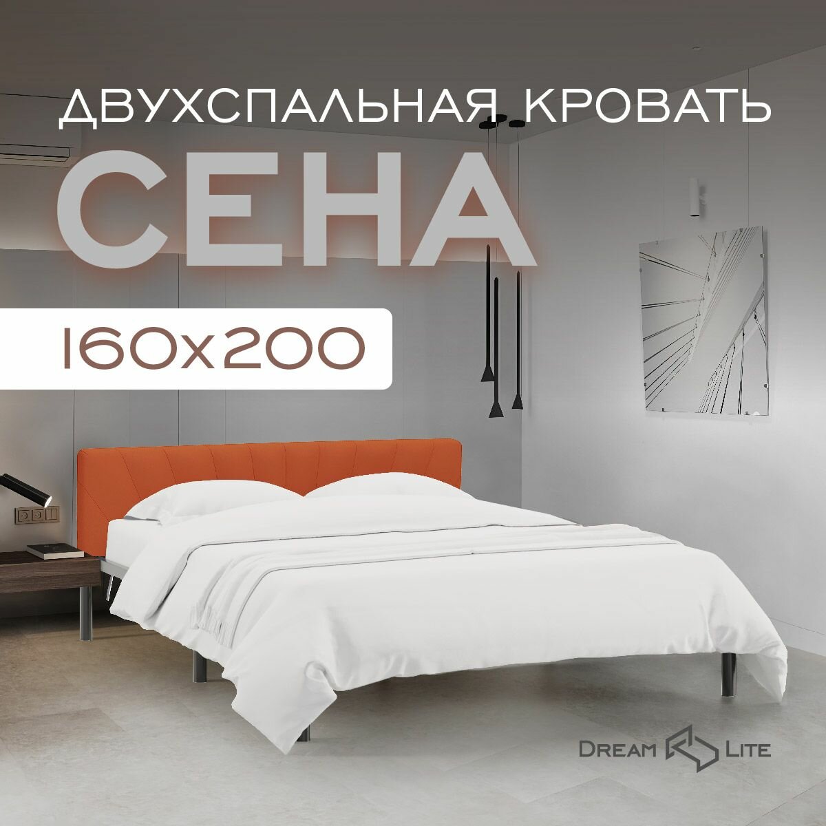 СохранитьКровать "Сена", 160х200 см, велюр Velutto оранжевый, белый каркас, DreamLite интересное: