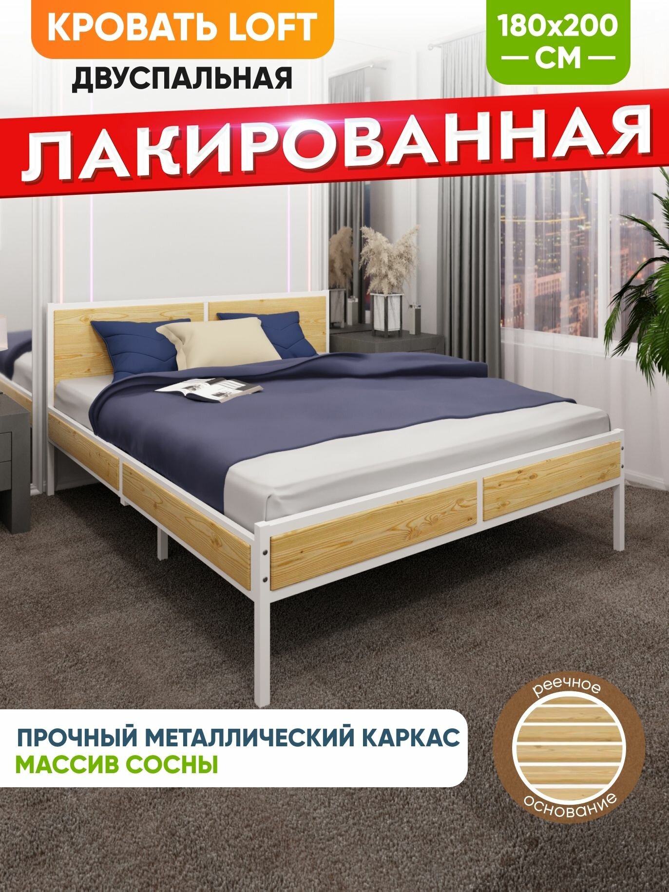 Ниже Вы можете прочитать отзывы на Кровать двуспальная Лофт с реечным основанием, лакированная с белым металлическим каркасом, 180х200 см, ознакомится с подробными характеристиками, посмотреть интересные обзоры и фотографии на Кровать двуспальная Лофт с реечным основанием, лакированная с белым металлическим каркасом, 180х200 см.