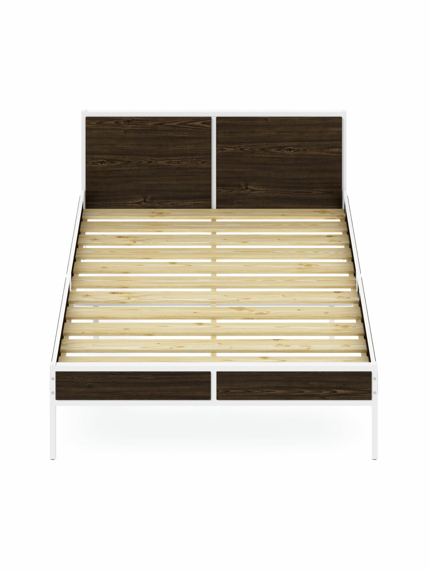 Кровать двуспальная Лофт с реечным основанием, цвет темного дуба с белым металлическим каркасом, 120х200 см