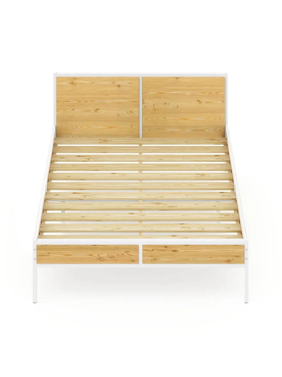 Кровать двуспальная Лофт с реечным основанием, лакированная с белым металлическим каркасом, 120х200 см