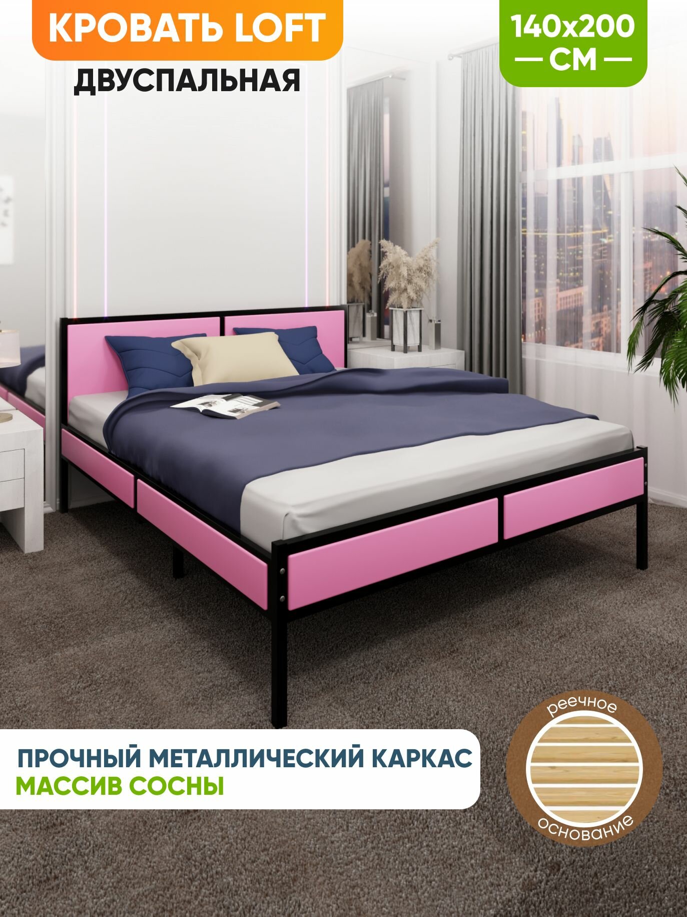 СохранитьКровать двуспальная Лофт с реечным основанием, цвет розовый с черным металлическим каркасом, 140х200 см интересное: