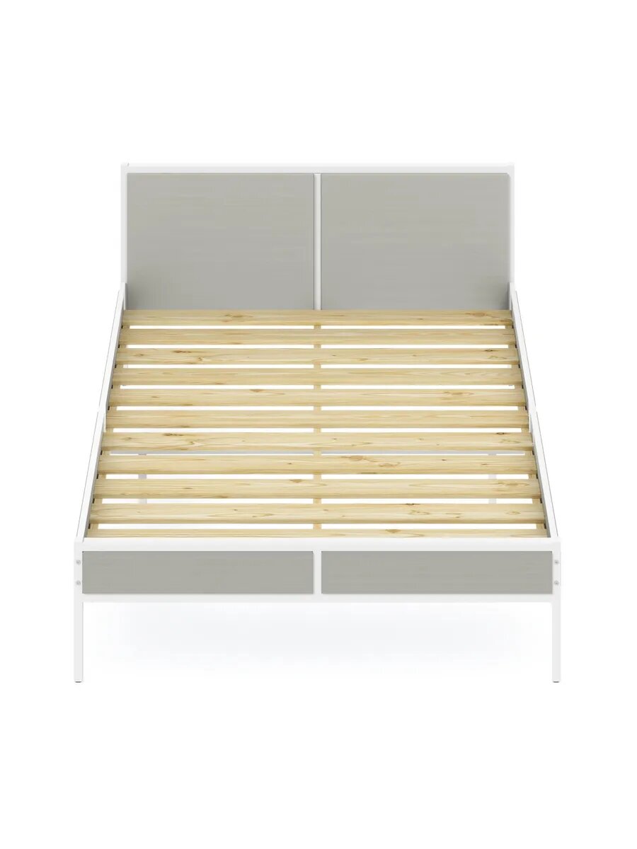 Кровать двуспальная Лофт с реечным основанием, цвет платины с белым металлическим каркасом, 140х200 см