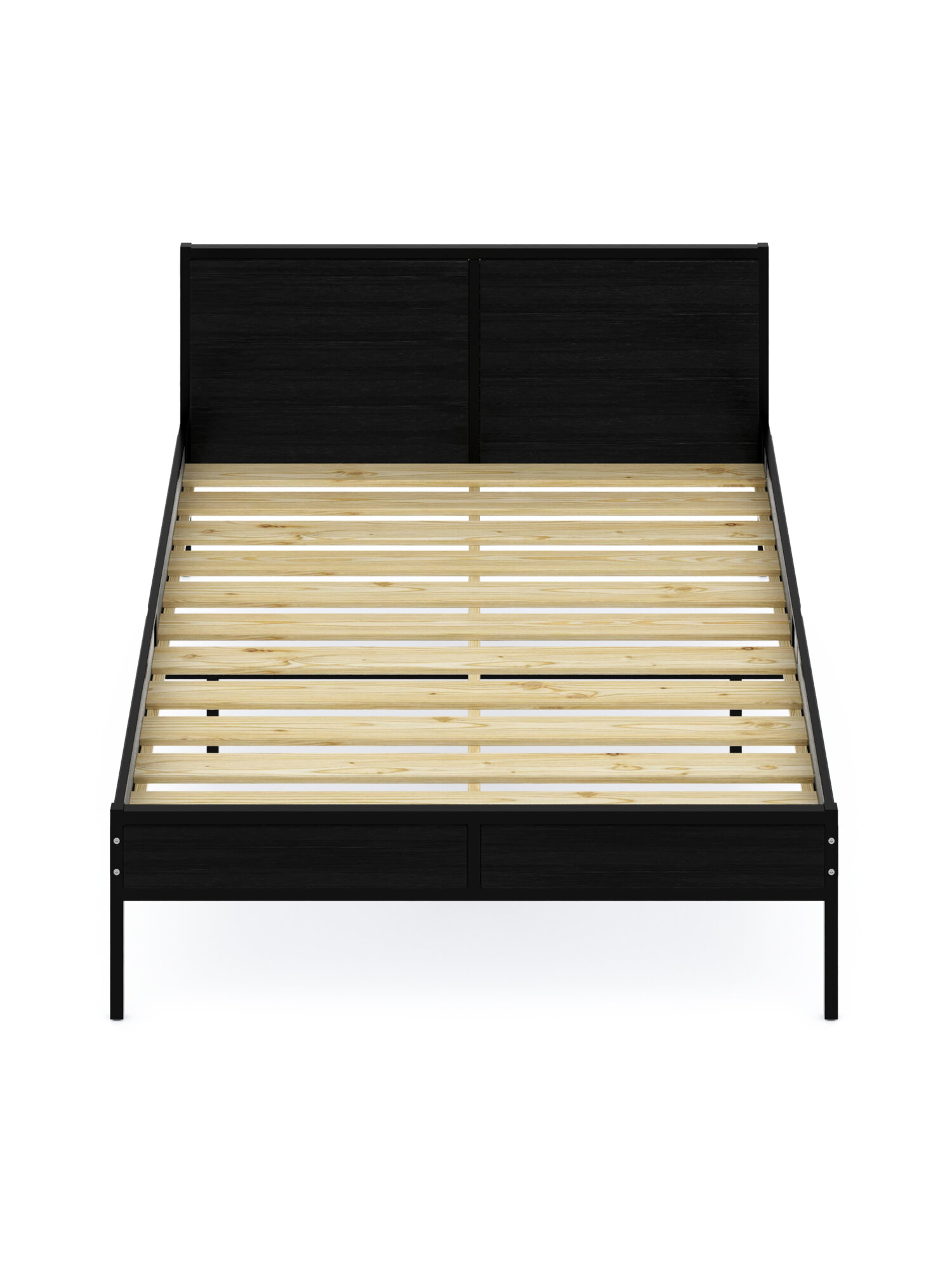 Кровать двуспальная Лофт с реечным основанием, цвет черного оникса с черным металлическим каркасом, 120х200 см