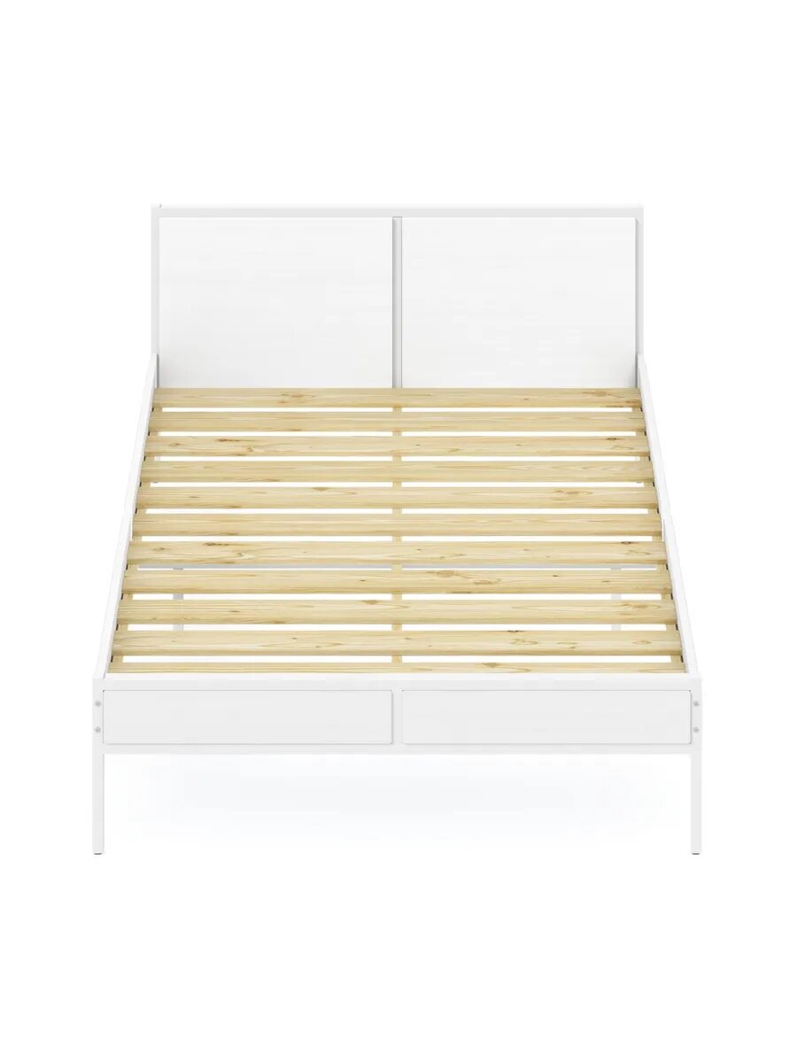 Кровать двуспальная Лофт с реечным основанием, цвет белый с белым металлическим каркасом, 140х200 см