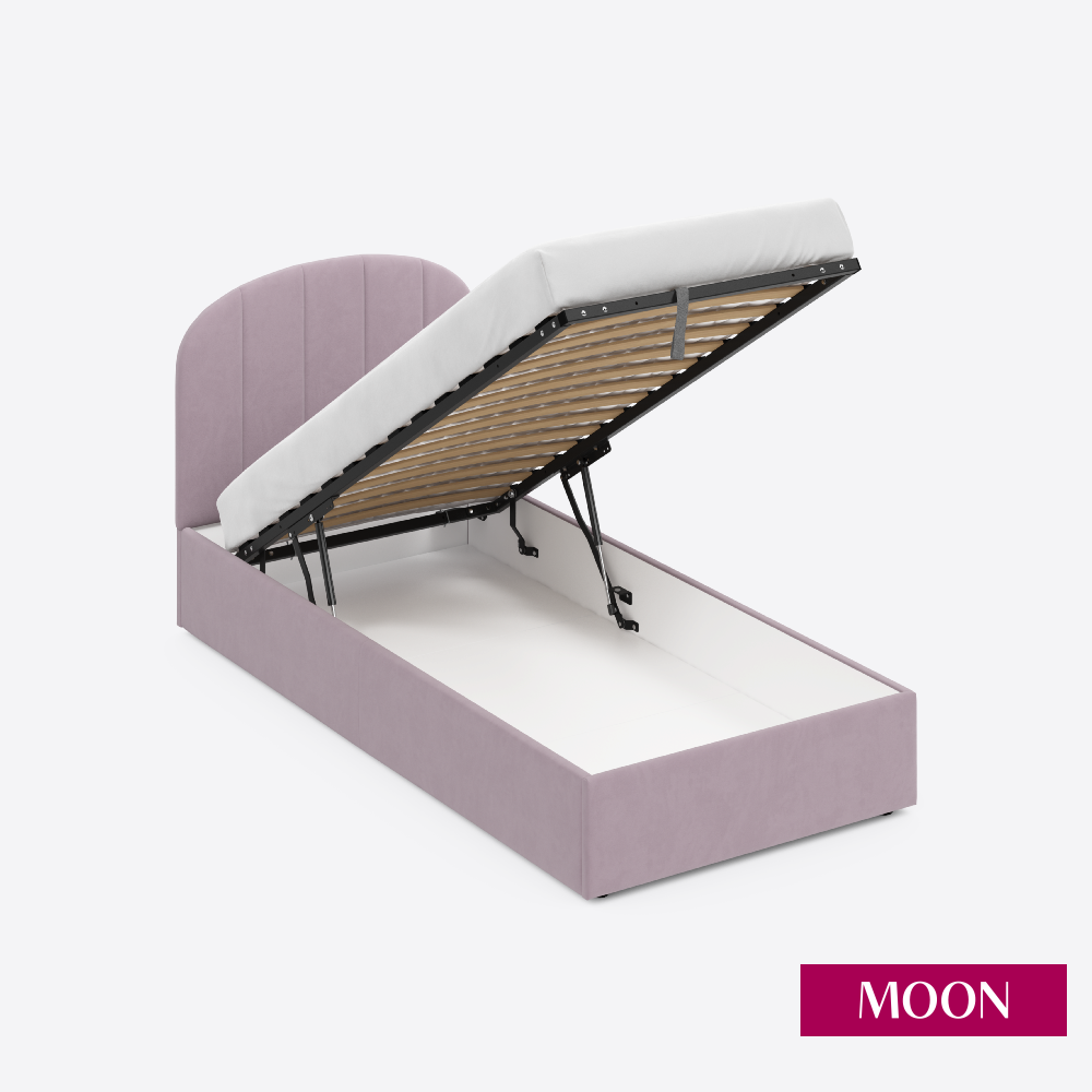 СохранитьКровать односпальная с подъемным механизмом, MOON FAMILY 1262, размер 90х200 см, велюр розовый. Ортопедическое основание в комплекте интересное: