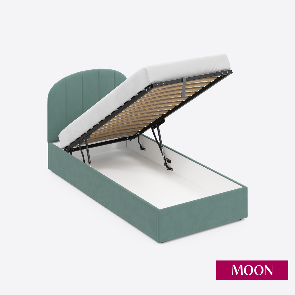 СохранитьКровать односпальная с подъемным механизмом, MOON FAMILY 1262, размер 90х200 см, велюр светло-зеленый. Ортопедическое основание в комплекте интересное:
