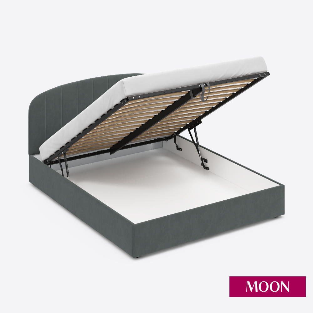 Кровать двуспальная с подъемным механизмом, MOON FAMILY 1262, размер 160х200 см, велюр серый. Ортопедическое основание в комплекте