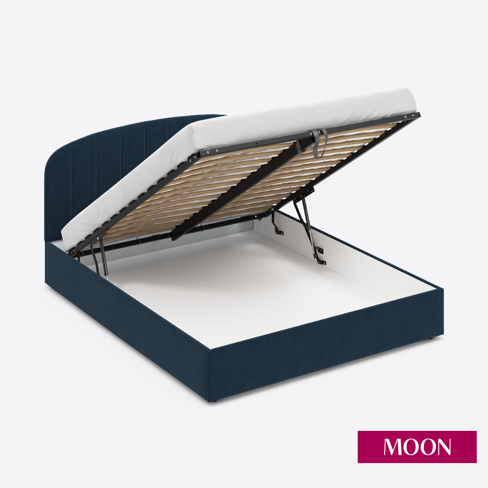 СохранитьКровать двуспальная с подъемным механизмом, MOON FAMILY 1262, размер 140х200 см, велюр темно-синий. Ортопедическое основание в комплекте интересное: