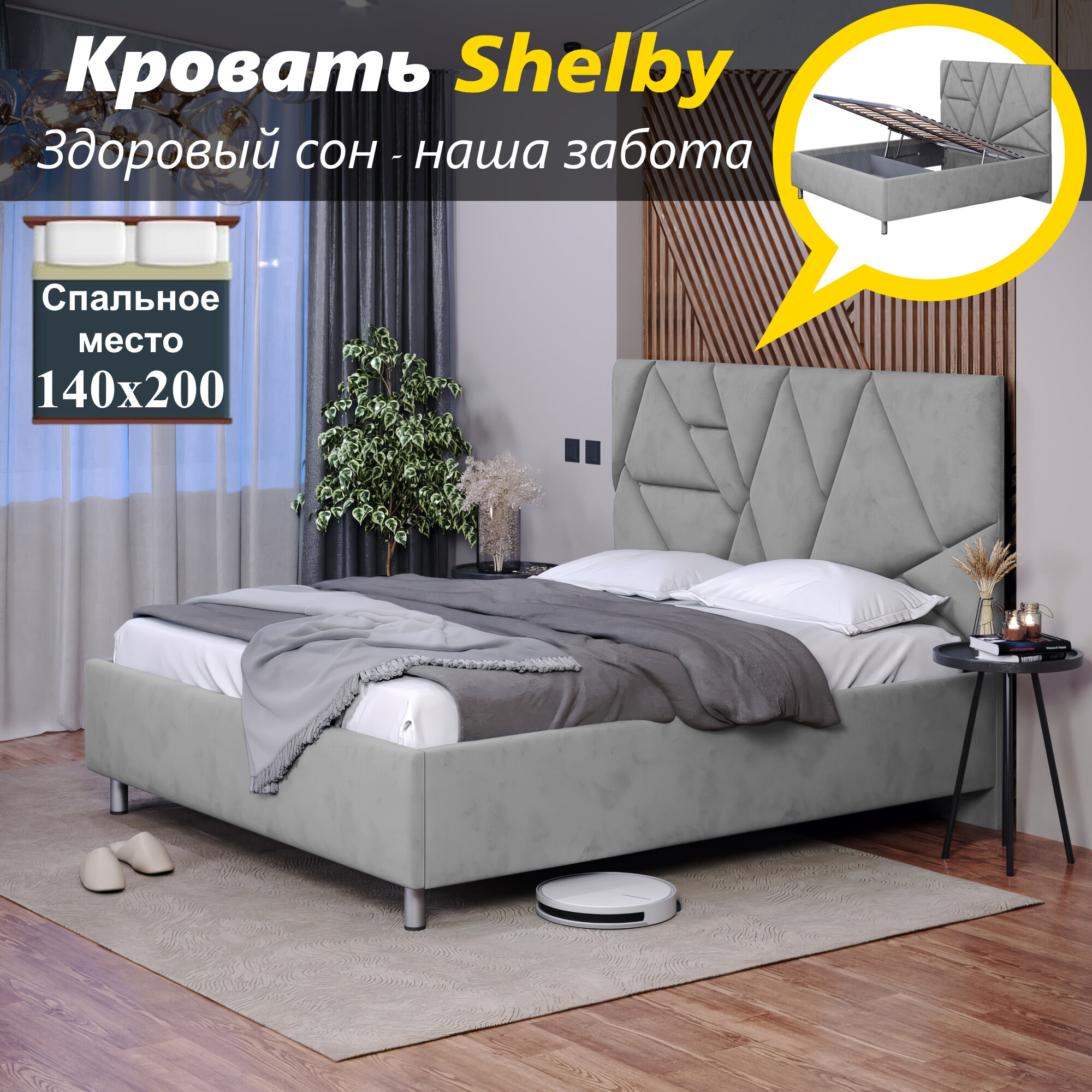 OKMebell Двуспальная кровать Shelby мягкое изголовье с размером спального места 140х200 с ортопедическим основанием и подъемным механизмом цвет Первый луч