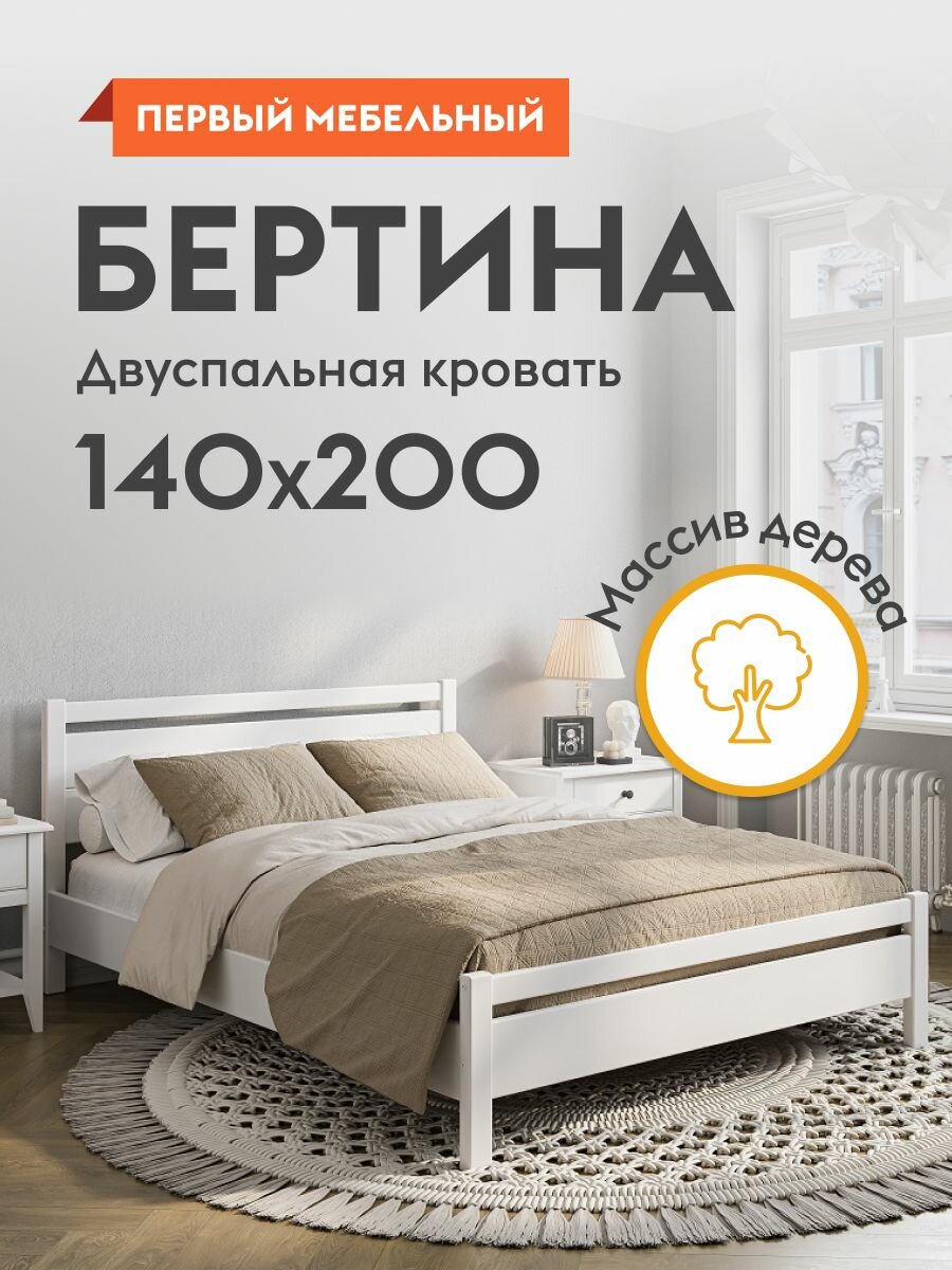 Кровать двуспальная Бертина 140х200 см деревянная, Массив сосны, Белый античный интересное: