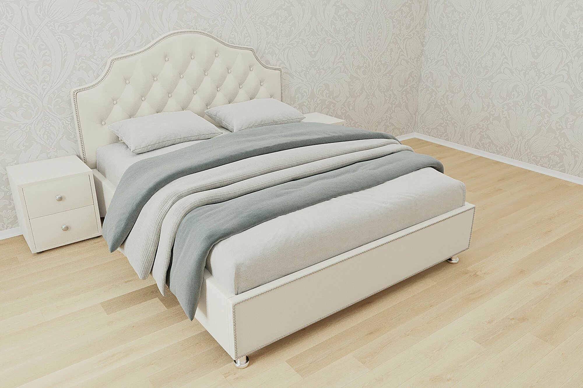 Полутороспальная кровать Мария с кареткой 140x200 основание металлическое с ламелями велюр белый ножки 5 см