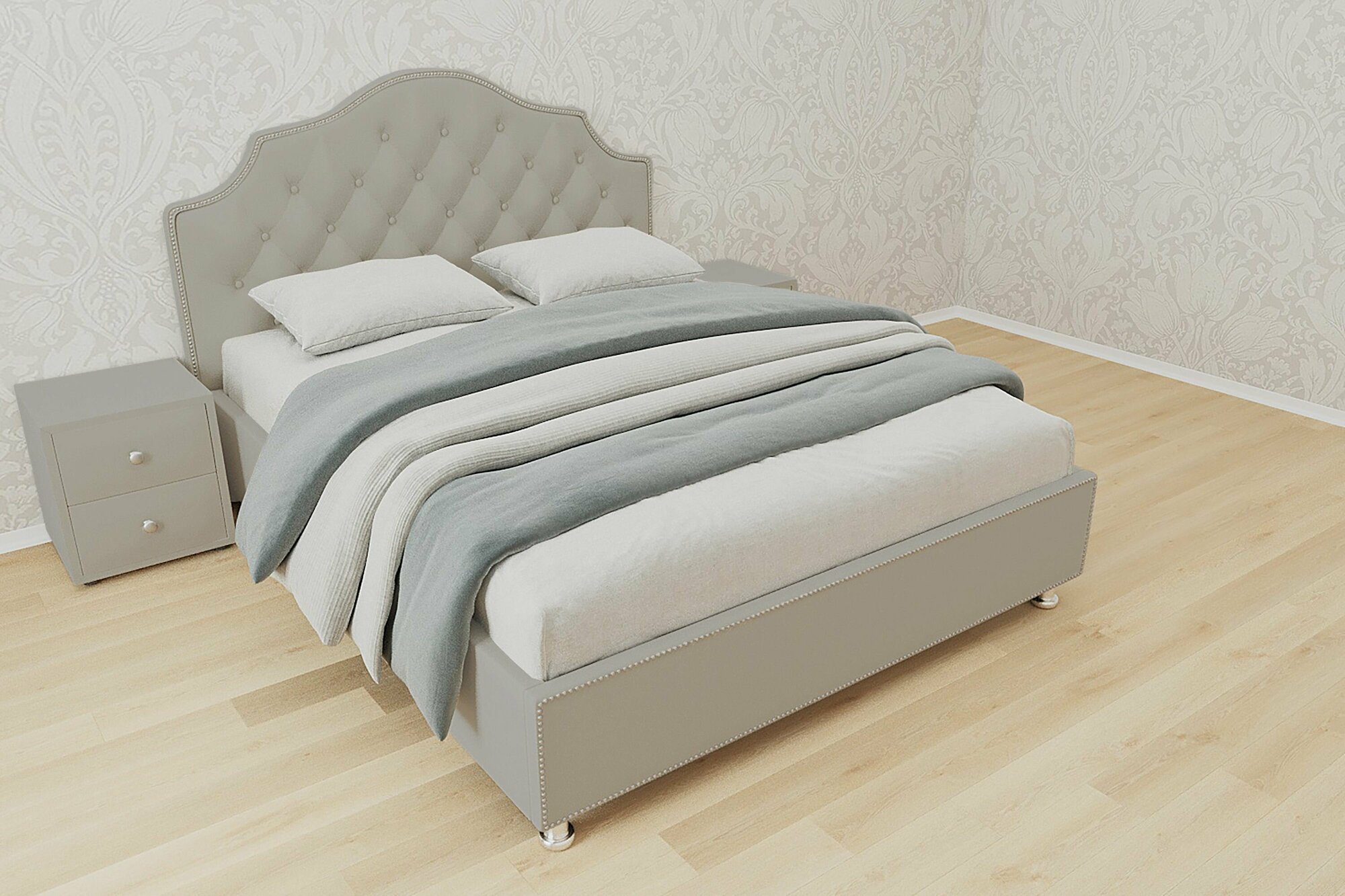 Двуспальная кровать Мария с кареткой 180x200 основание металлическое с ламелями велюр серый без ножек