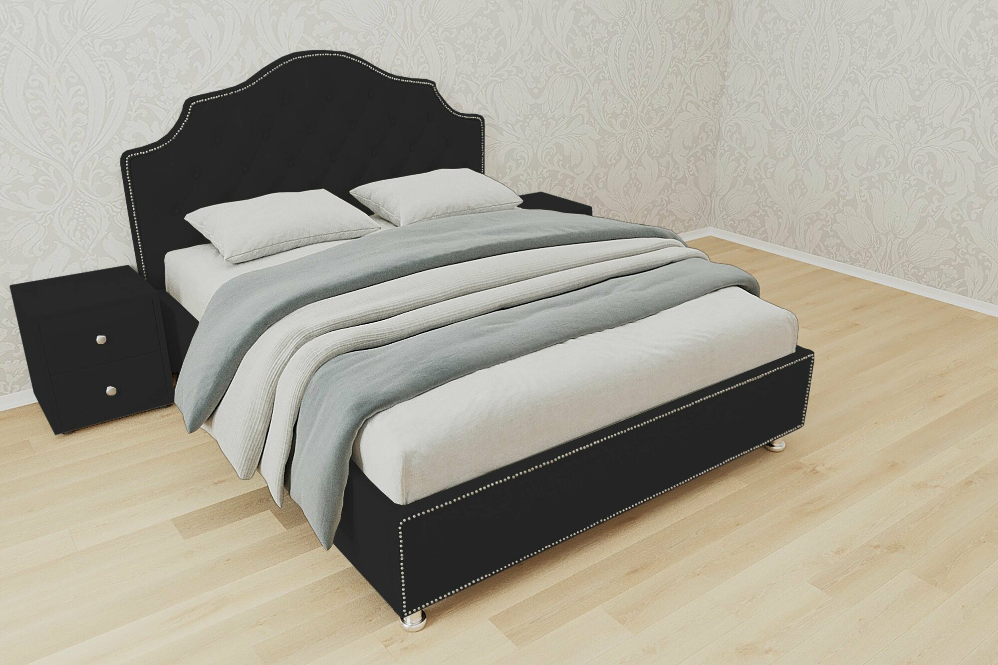 Двуспальная кровать Мария с кареткой 160x200 основание металлическое с ламелями велюр черный ножки 5 см