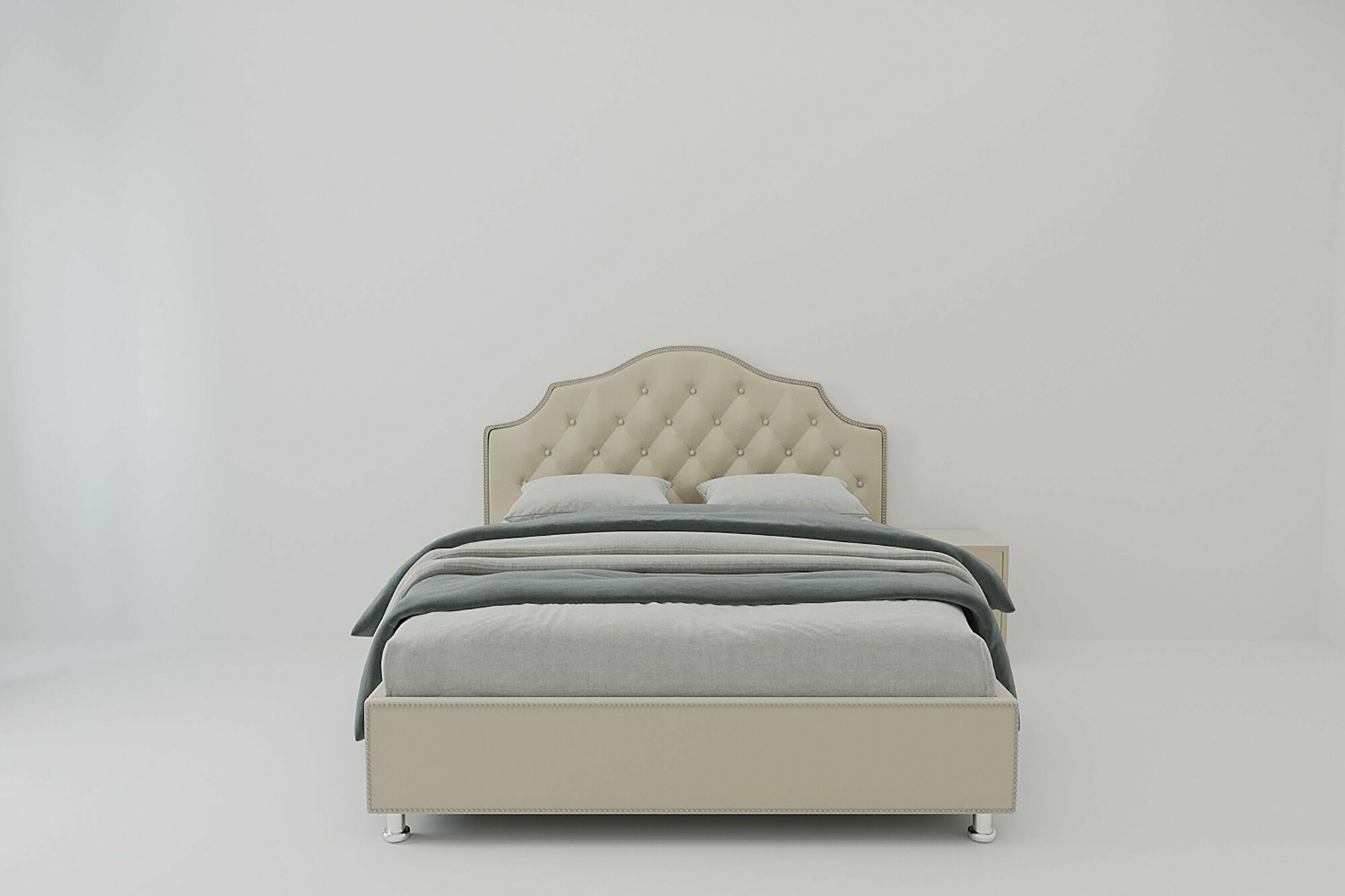Двуспальная кровать Мария с кареткой 160x200 основание металлическое с ламелями велюр бежевый ножки 13 см хром