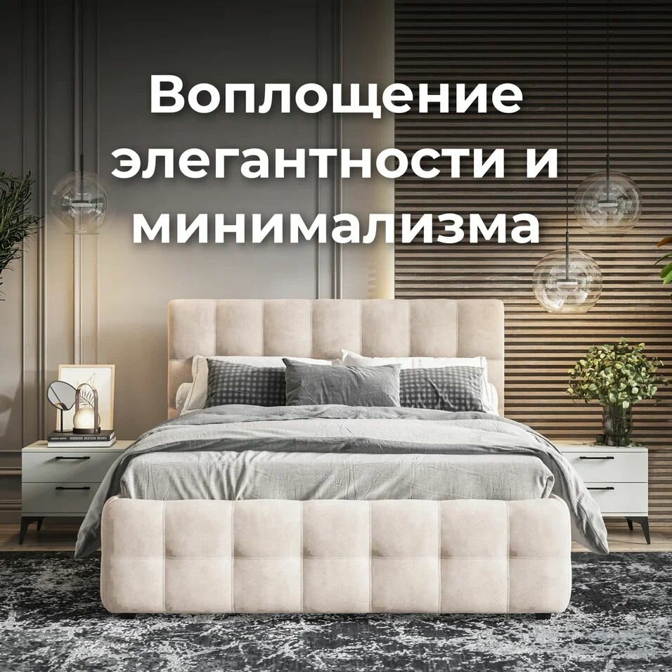 Купить Двуспальная кровать Босс, с подъемным механизмом, велюр Monolit латте, спальное место 160х200 см