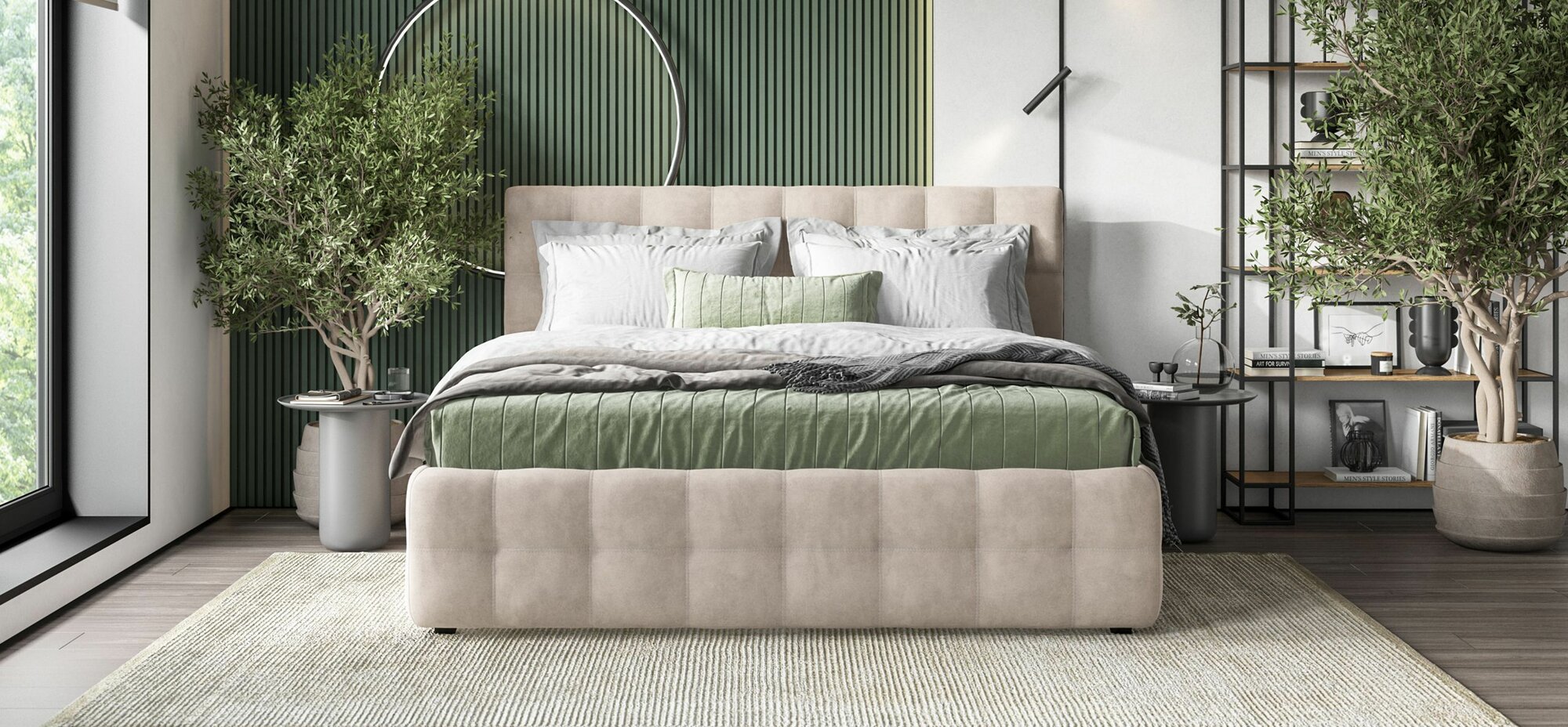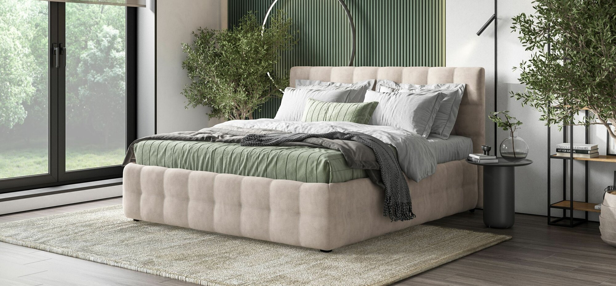 Двуспальная кровать Босс, с подъемным механизмом, велюр Monolit латте, спальное место 140х200 см