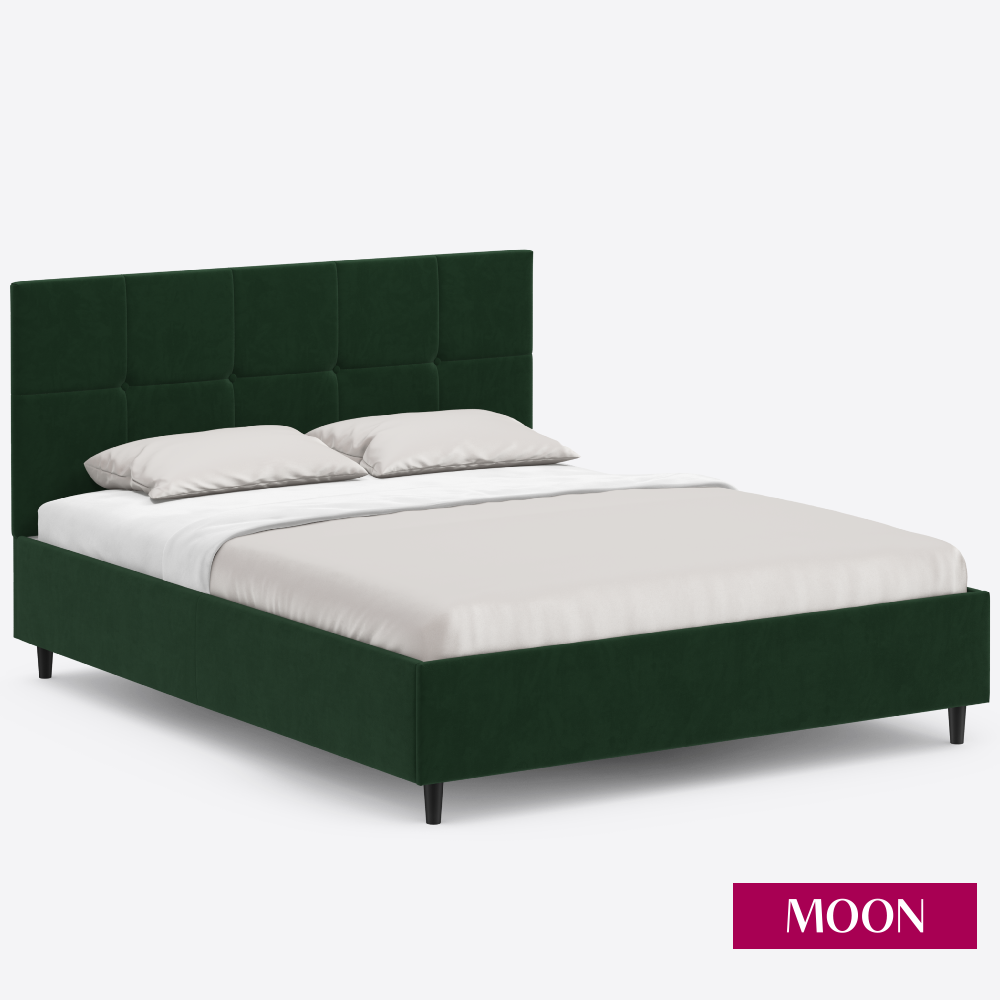 Кровать двуспальная с подъемным механизмом на ножках MOON FAMILY 1261, размер 160х200 см, велюр зеленый. Ортопедическое основание в комплекте
