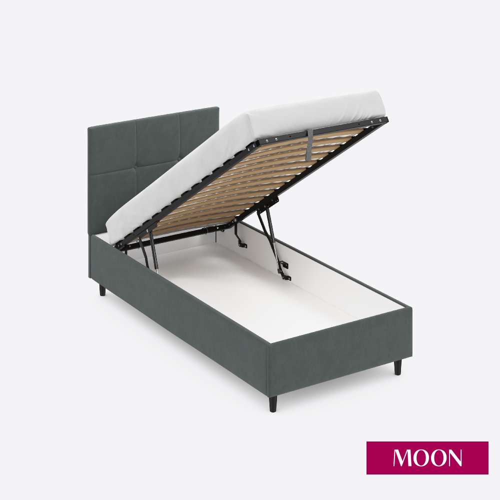 СохранитьКровать односпальная с подъемным механизмом на ножках MOON FAMILY 1261, размер 90х200 см, велюр серый. Ортопедическое основание в комплекте интересное: