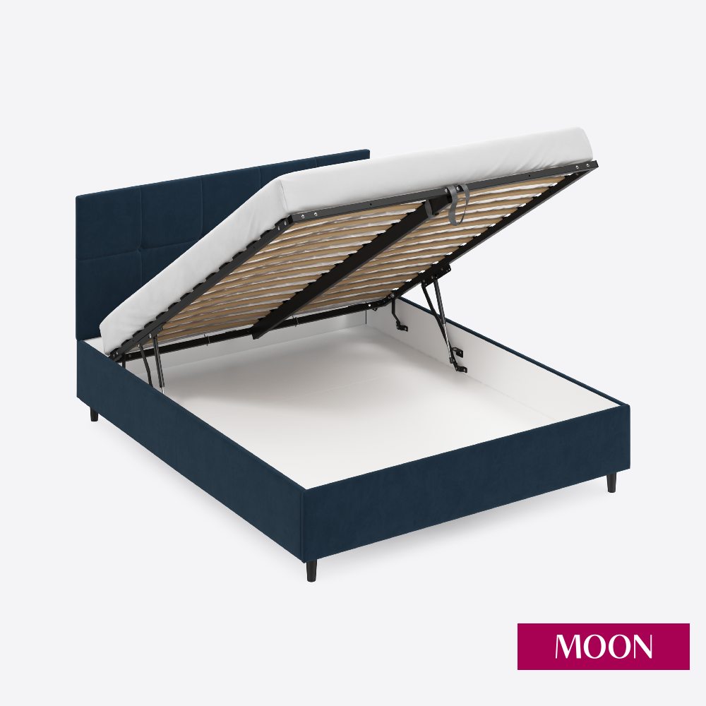 СохранитьКровать односпальная с подъемным механизмом на ножках MOON FAMILY 1261, размер 120х200 см, велюр темно-синий. Ортопедическое основание в комплекте интересное: