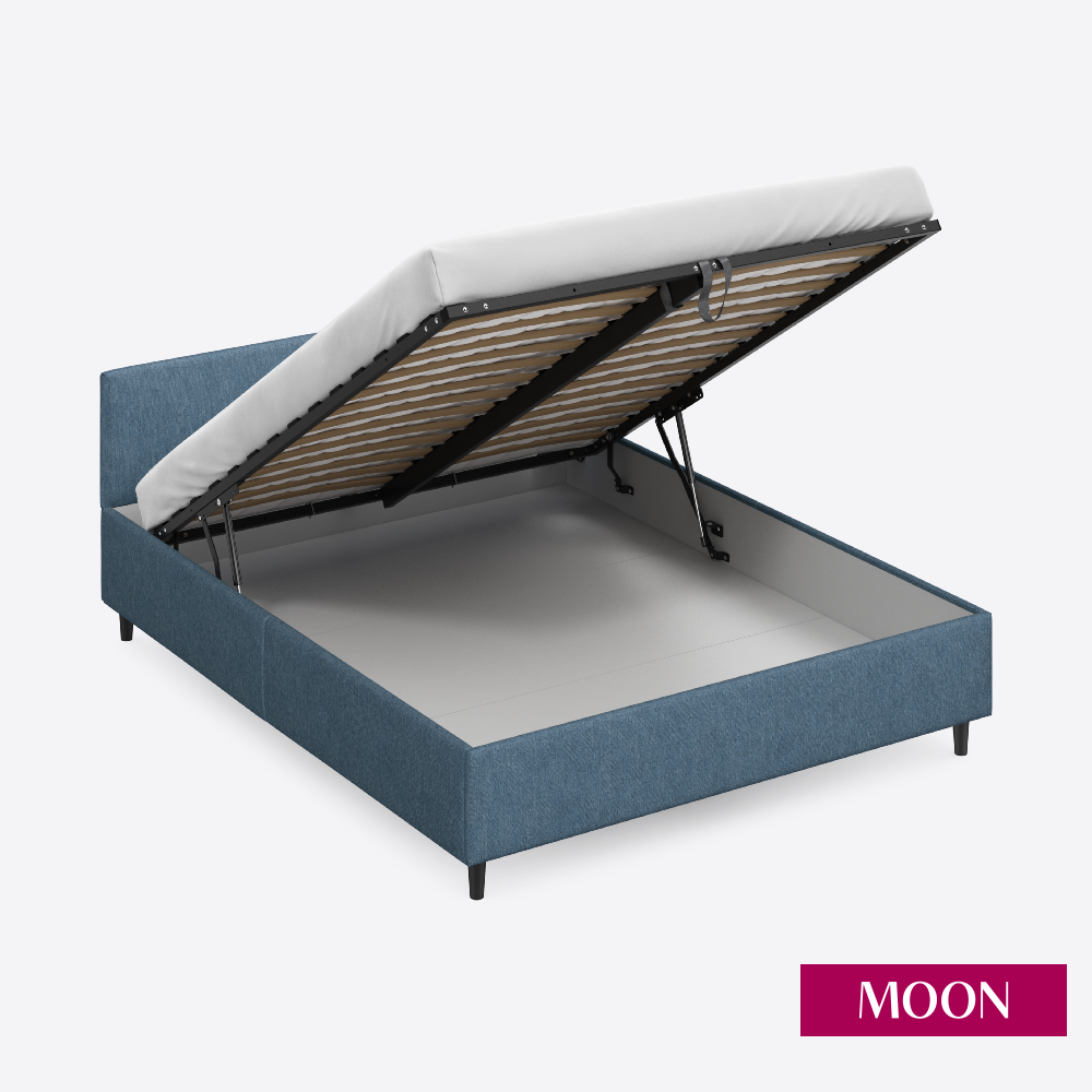Кровать двуспальная с подъемным механизмом на ножках, MOON FAMILY 1250, размер 180х200 см, рогожка синяя. Ортопедическое основание в комплекте
