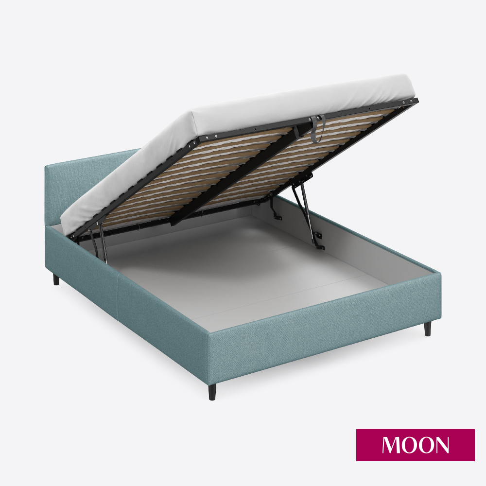 СохранитьКровать двуспальная с подъемным механизмом на ножках, MOON FAMILY 1250, размер 160х200 см, рогожка бирюзовая. Ортопедическое основание в комплекте интересное: