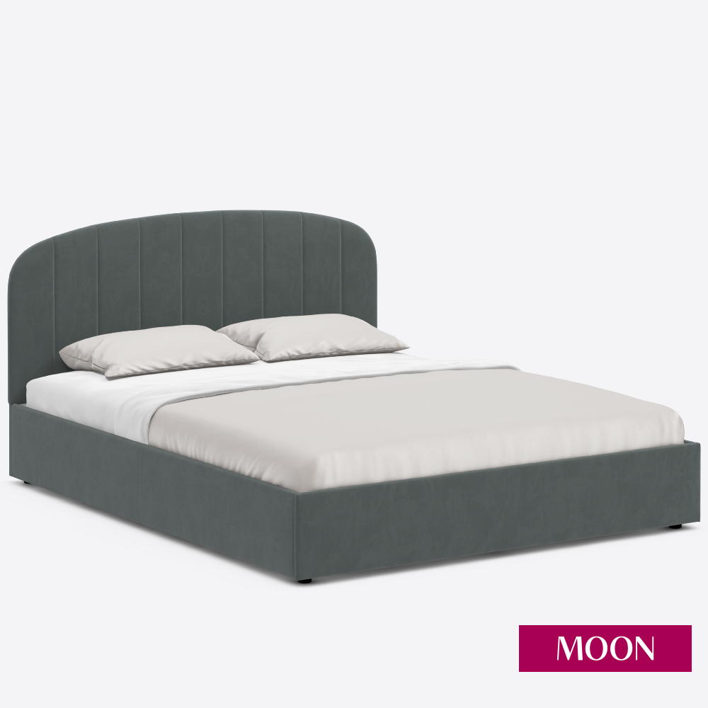 Кровать двуспальная без подъемного механизма, MOON FAMILY 1262, размер 160х200 см, велюр серый. Ортопедическое основание в комплекте