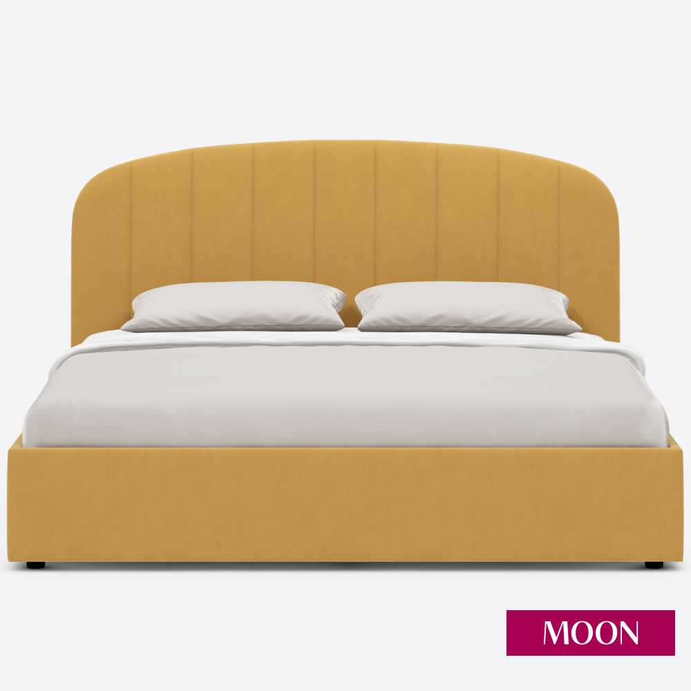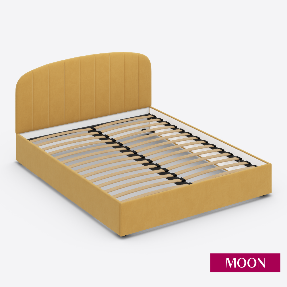 Кровать двуспальная без подъемного механизма, MOON FAMILY 1262, размер 160х200 см, велюр желтый. Ортопедическое основание в комплекте