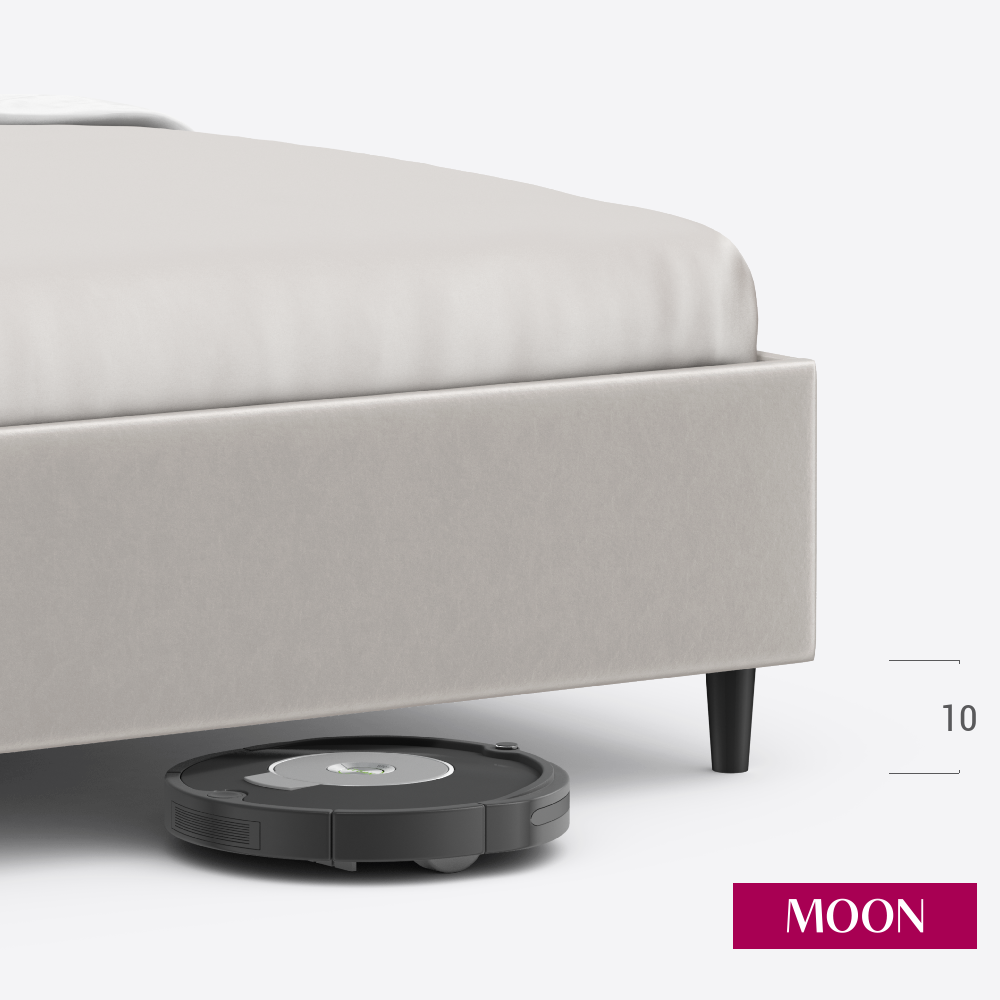 Кровать двуспальная без подъемного механизма на ножках, MOON FAMILY 1258, размер 180х200 см, велюр светло-серый. Ортопедическое основание в комплекте