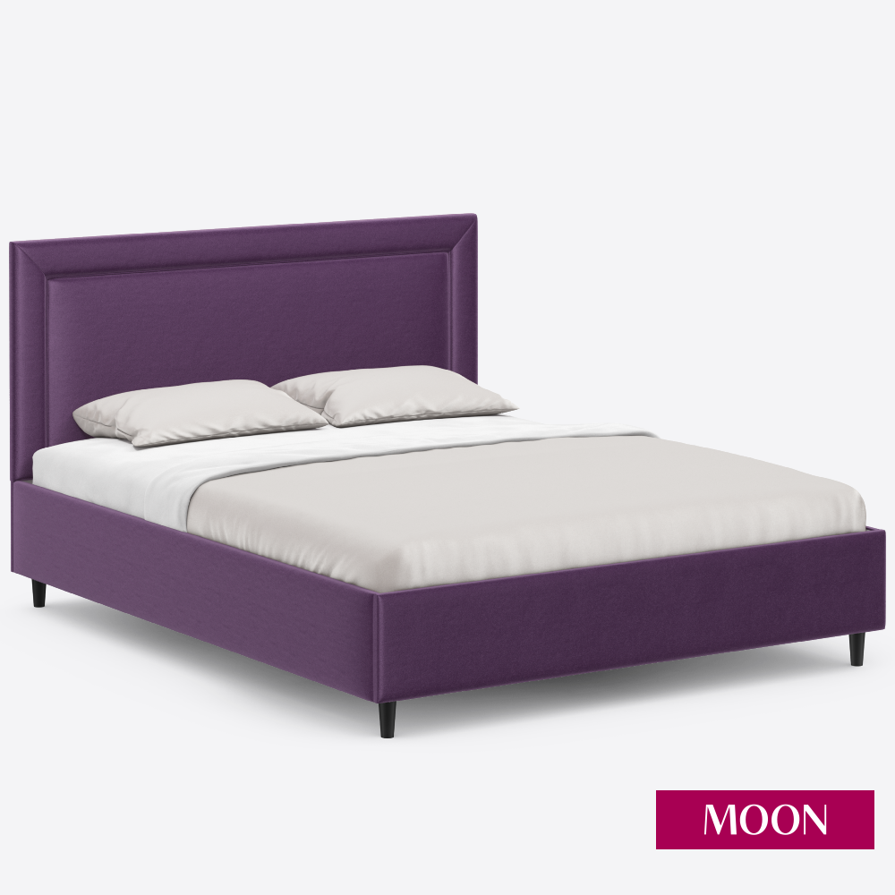 Кровать двуспальная без подъемного механизма на ножках, MOON FAMILY 1258, размер 180х200 см, велюр фиолетовый. Ортопедическое основание в комплекте