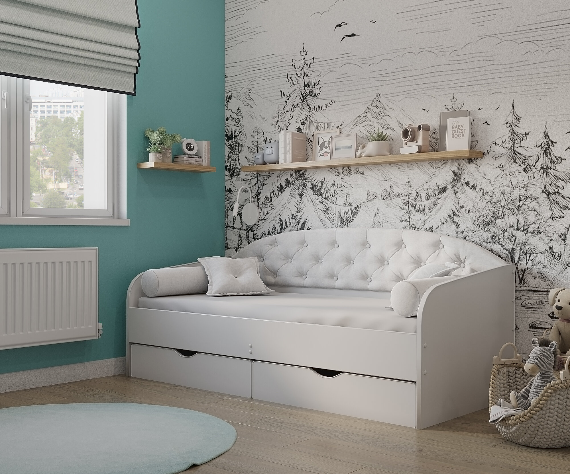 Matrix кровать с мягкой спинкой Sofa 9, 80x190 см, цвет белый
