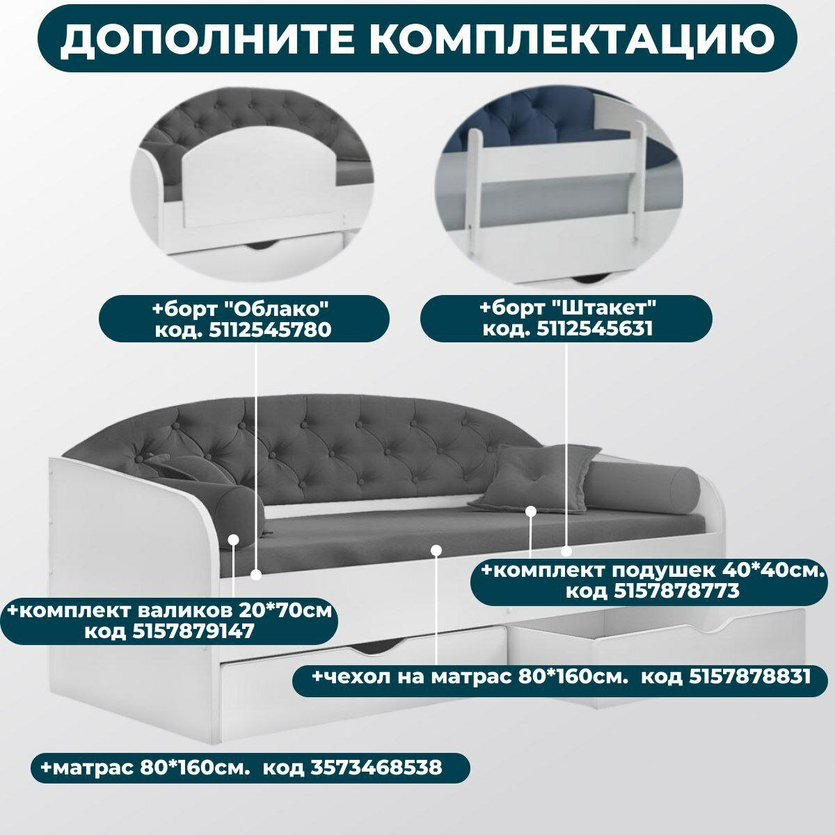 Matrix диван- кровать детская с мягкой спинкой Sofa 9, 80x160 см, цвет дуб белый с серым