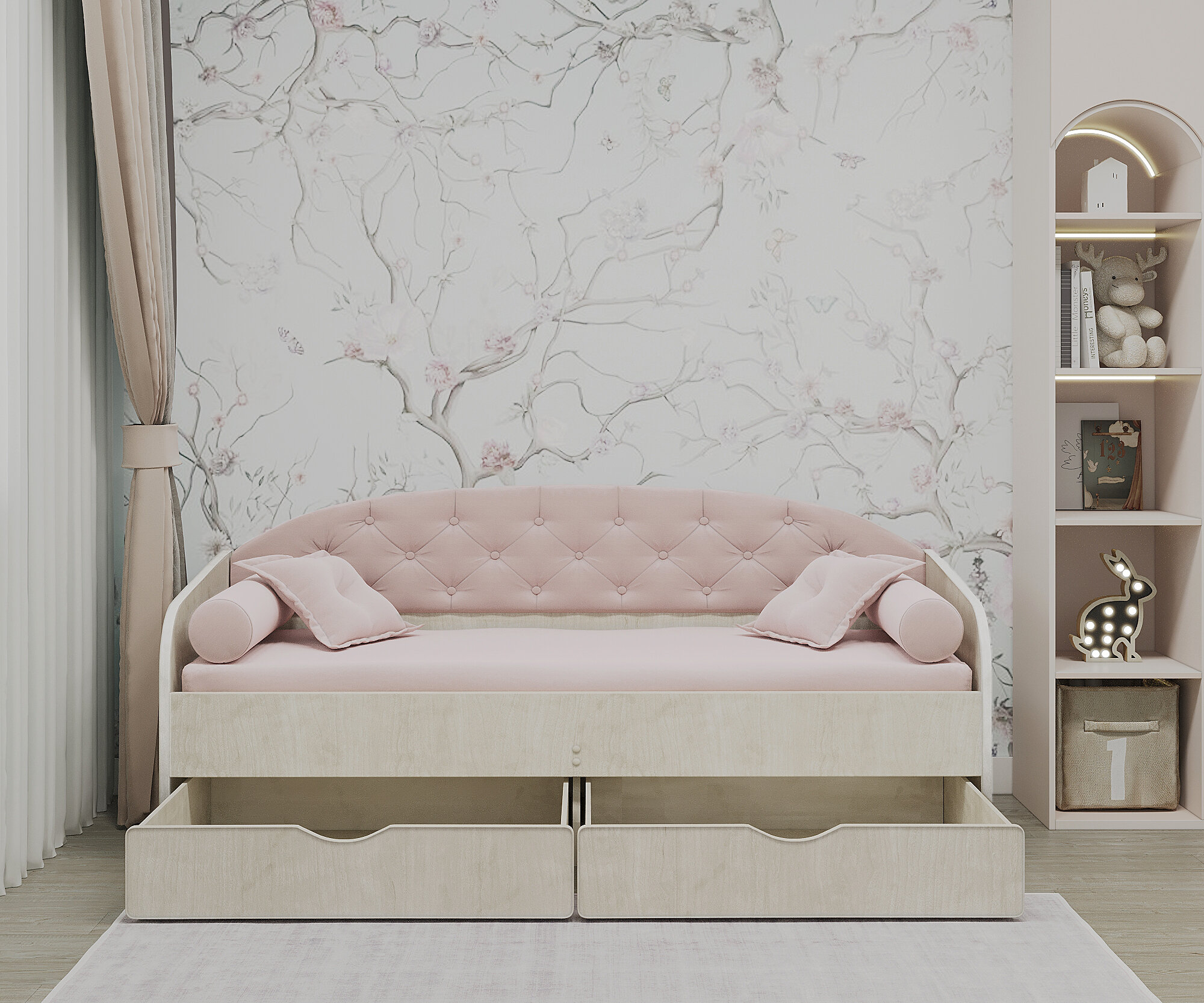 Matrix диван- кровать с мягкой спинкой Sofa 9, 80x160 см, цвет дуб белый с розовым