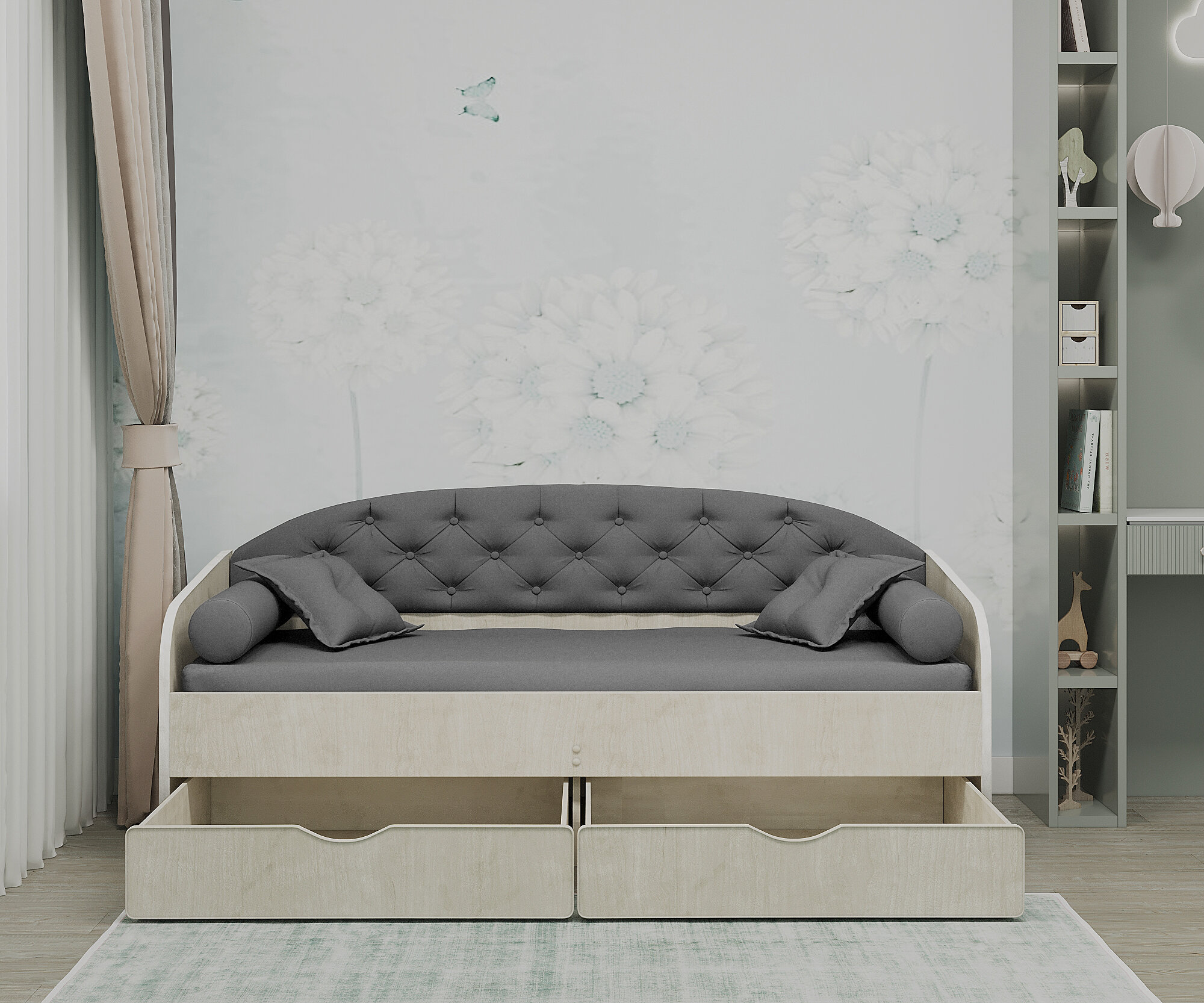 Matrix диван- кровать детская с мягкой спинкой Sofa 9, 80x190 см, цвет дуб белый с серым