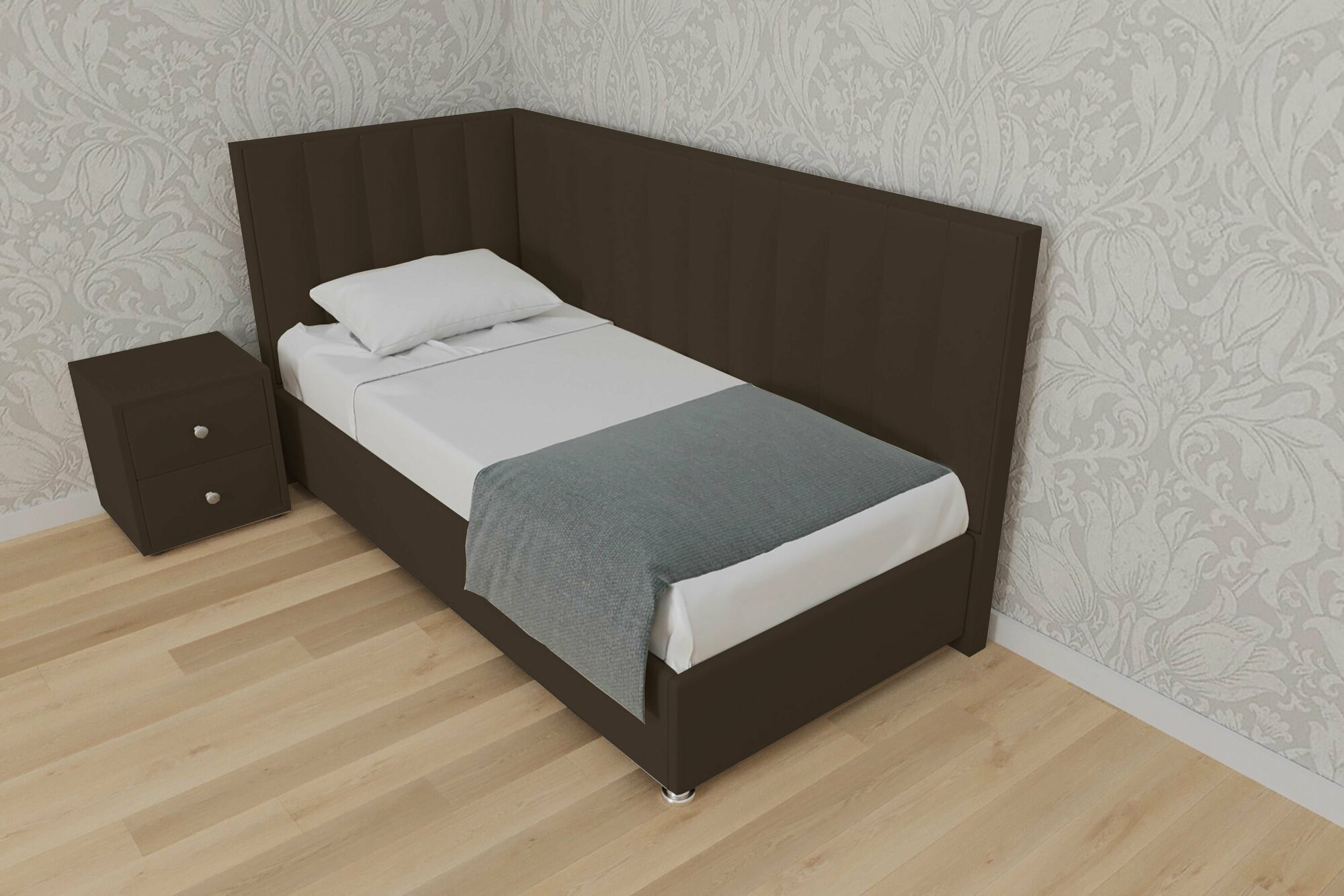 Купить Односпальная кровать Сочи 90x200 с подъемным механизмом и с коробом для белья велюр коричневый ножки 5 см угол правый