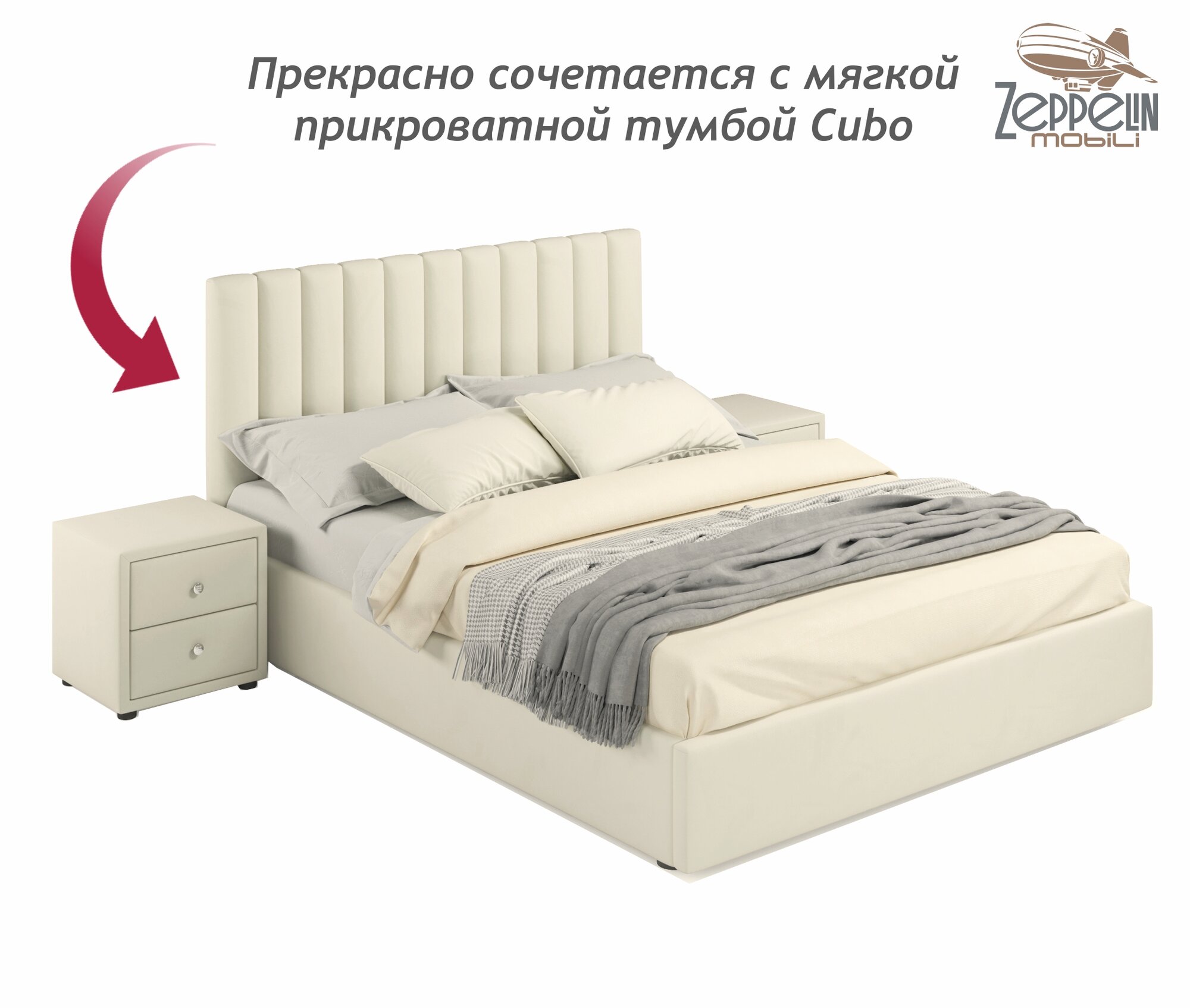 Купить Двуспальная кровать Olivia 1600 бежевая Zeppelin с ящиками и ортопедическим основанием, 160х200, мягкая из велюра, ламели, выкатные ящики