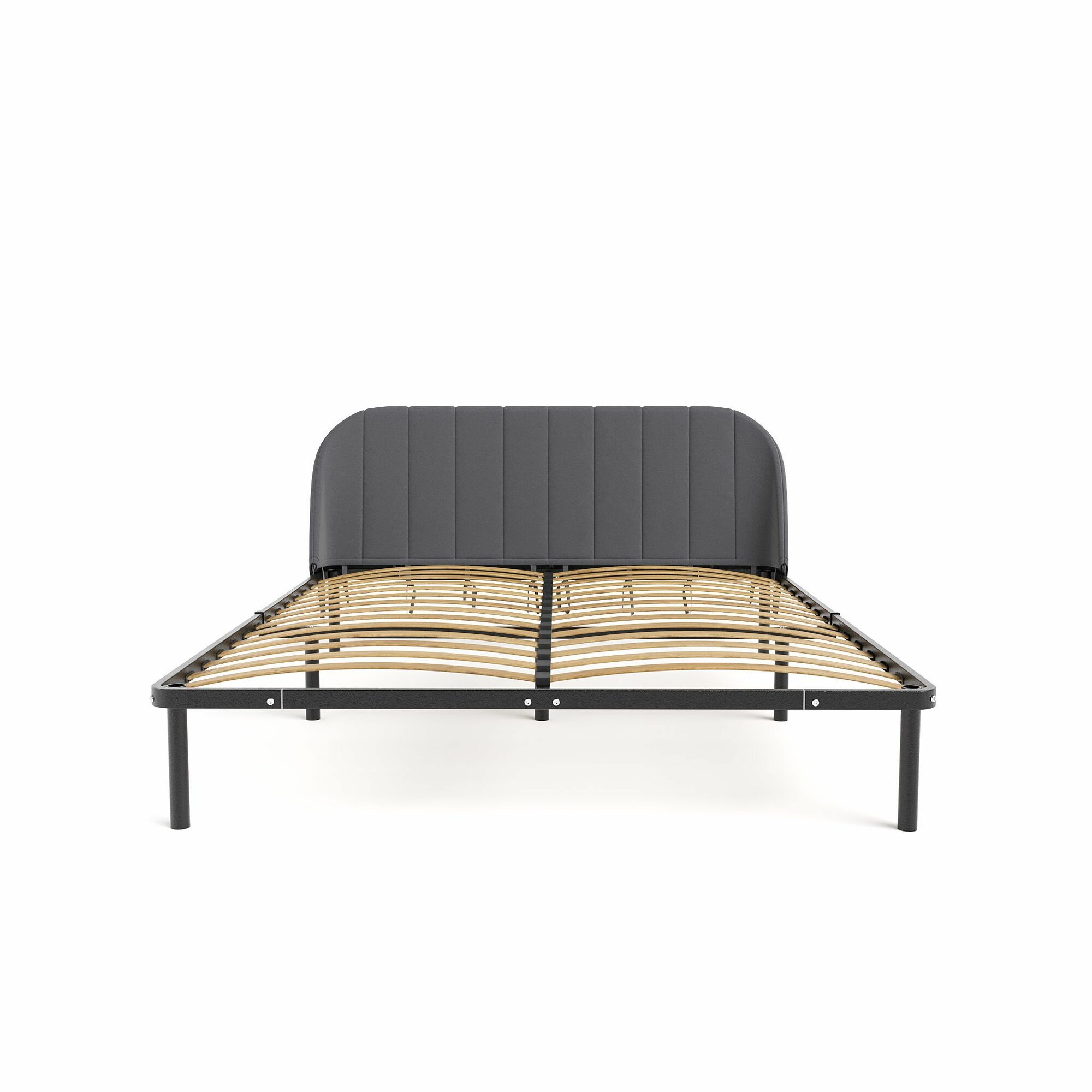 Кровать двуспальная металлическая круглая 160х200 серая "Эльба блэк" черный каркас, DreamLite
