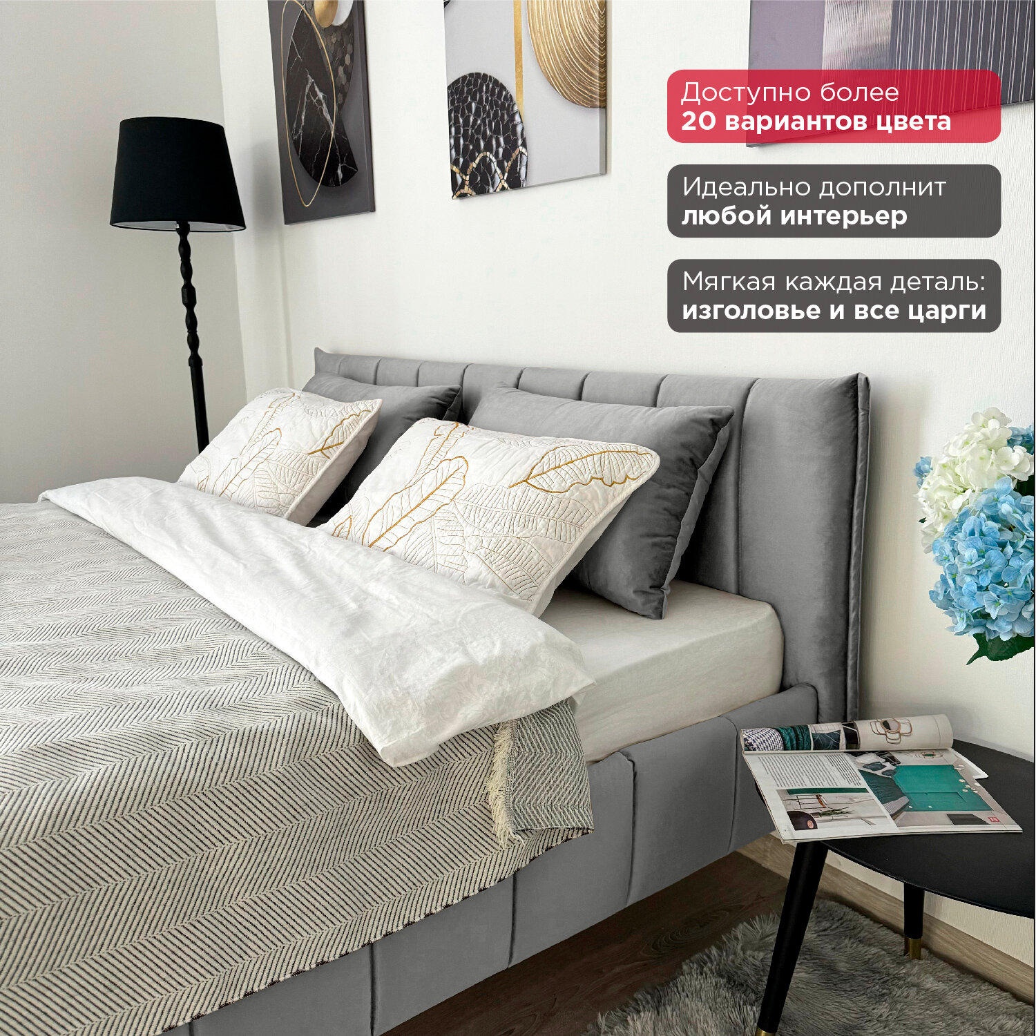 Кровать Redsofa Стелла серый Шайн / ножки хром 140х200 с ортопедическим основанием